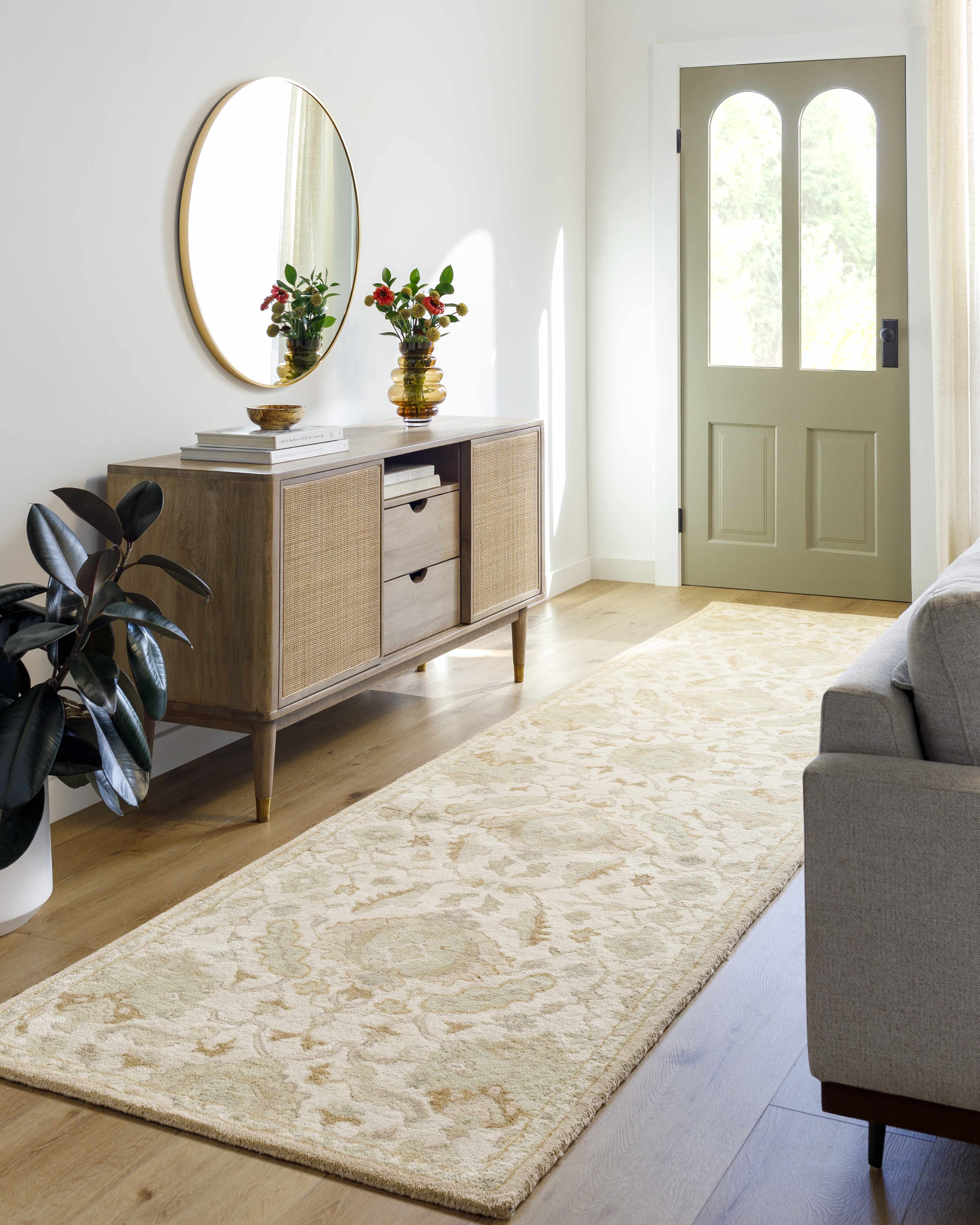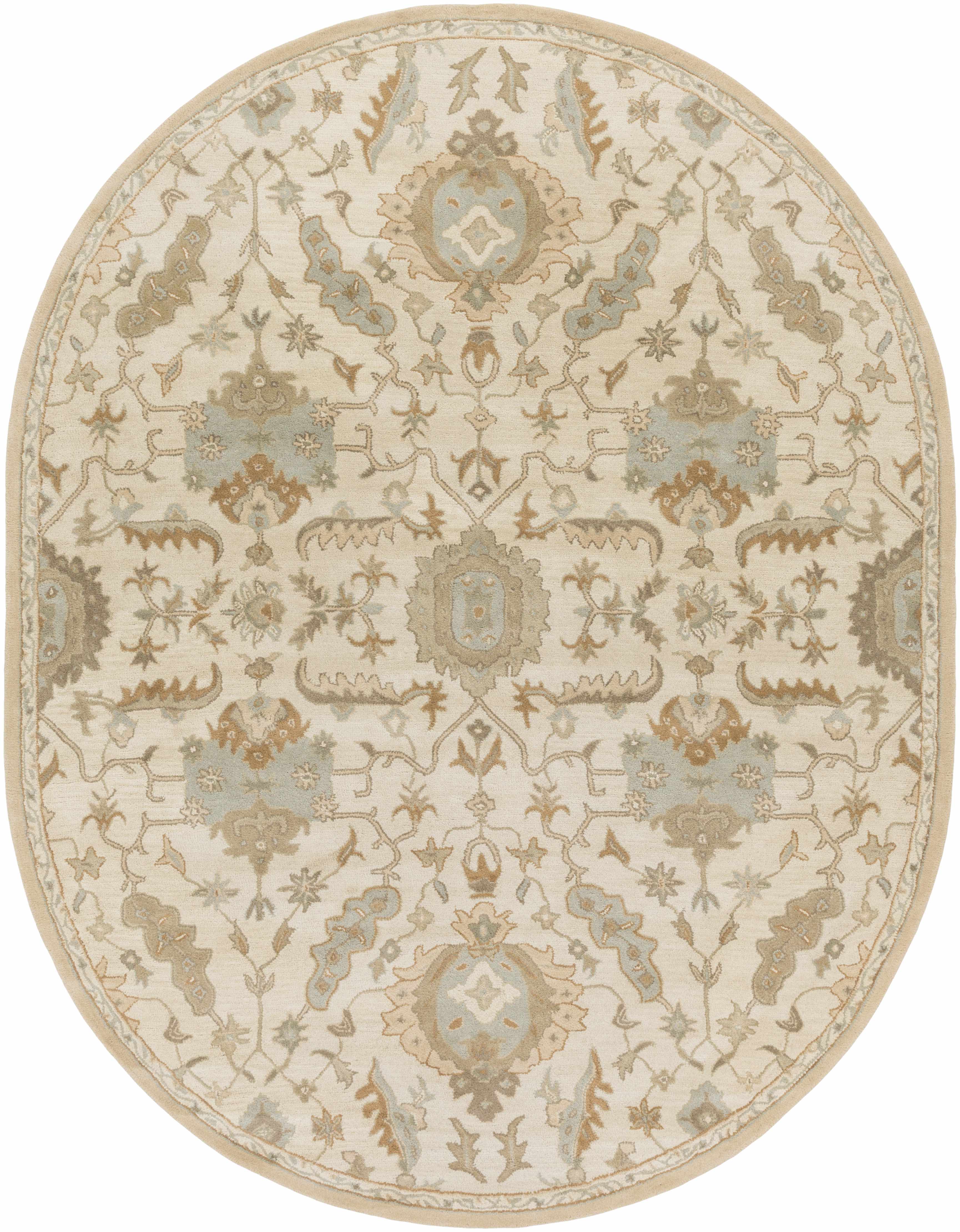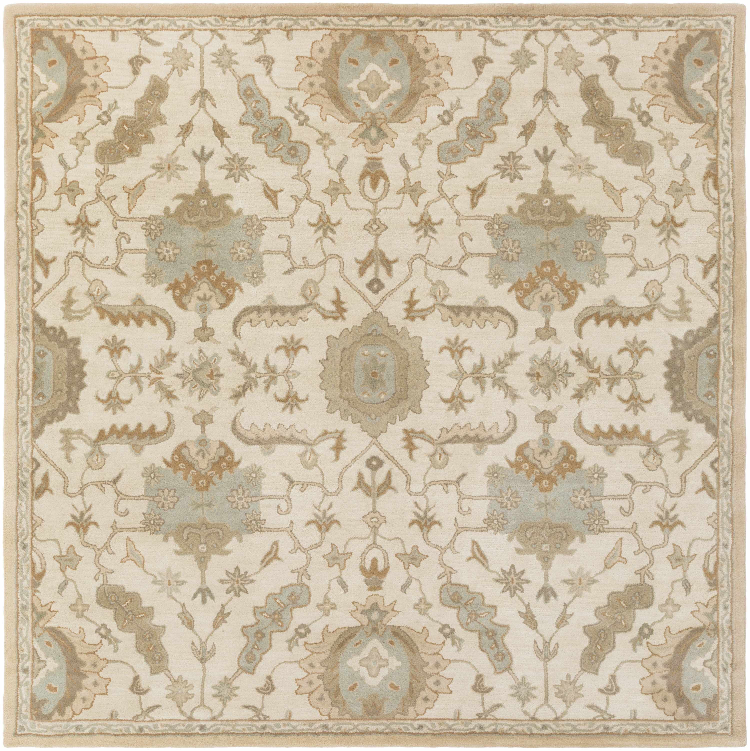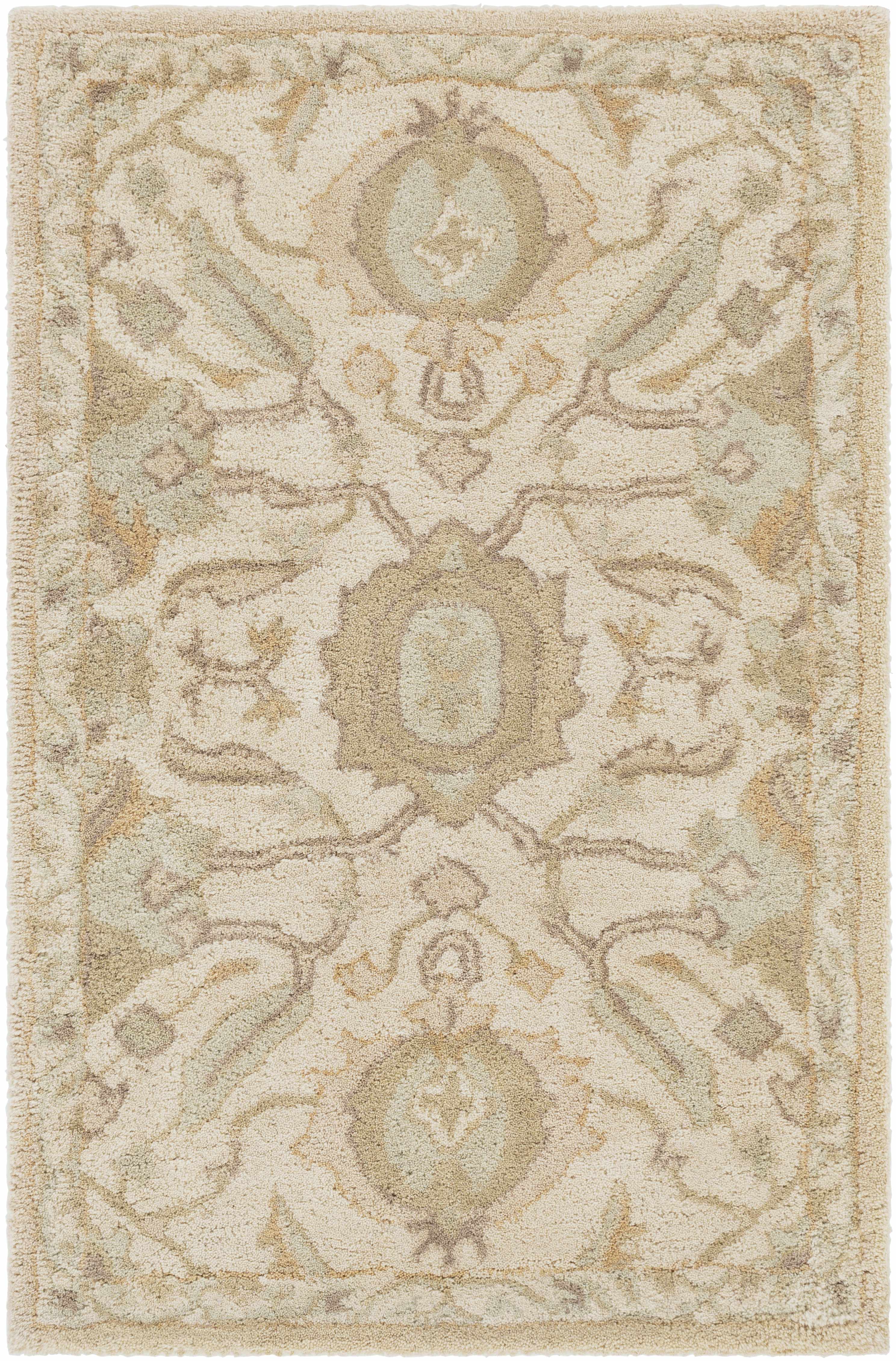 Collection: Carrolltown Colors: Cream, LightBrown, DustySage, LightOlive Construction: Hand Tufted Material: 100% Wool Pile: Medium Pile Pile Height: 0.39" Styles: Traditional Backing: Canvas Made In: India...