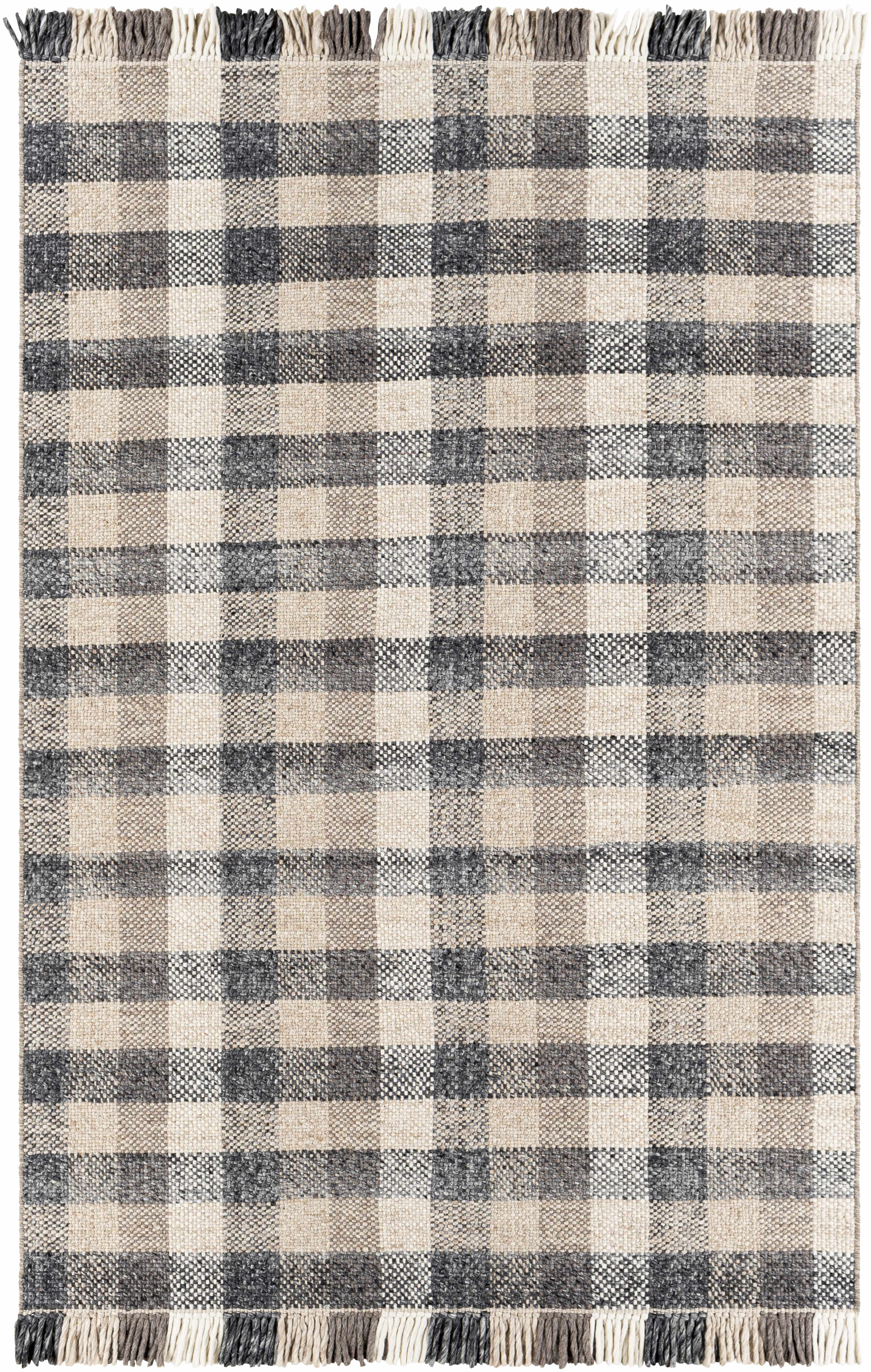 Collection: Chilliwack Colors: Charcoal, Cream, Tan, Medium Gray Construction: Hand Woven Material: 100% Wool Pile: No Pile Styles: Transitional,Traditional Made In: India Thickness: 0.5" Fringe Length:...