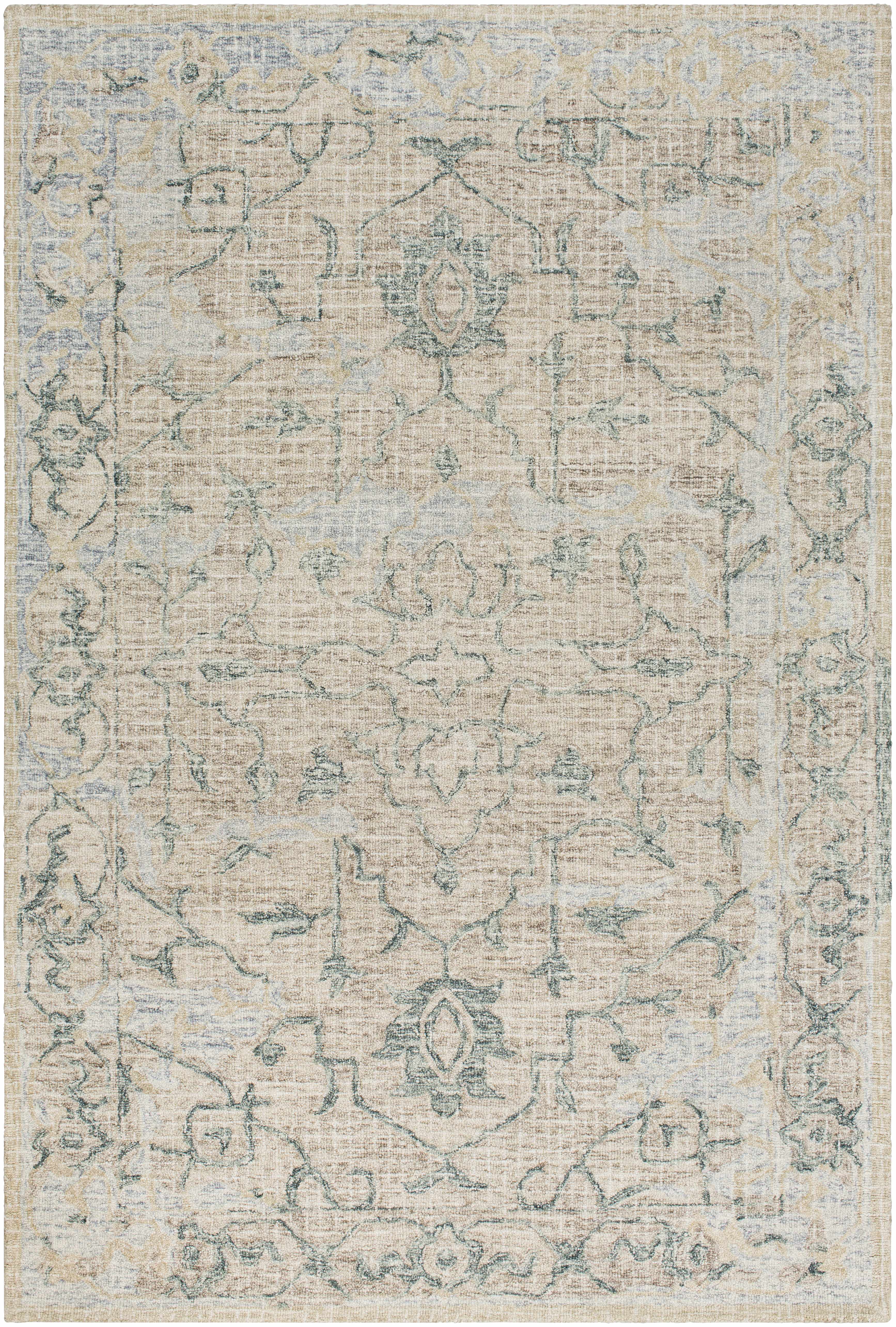 Collection: Connellsville Colors: Sage, Beige, Taupe, Slate Blue, DarkGreen Construction: Hand Tufted Material: 100% Wool Pile: Medium Pile Pile Height: 0.3" Styles: Traditional Backing: Canvas Made...