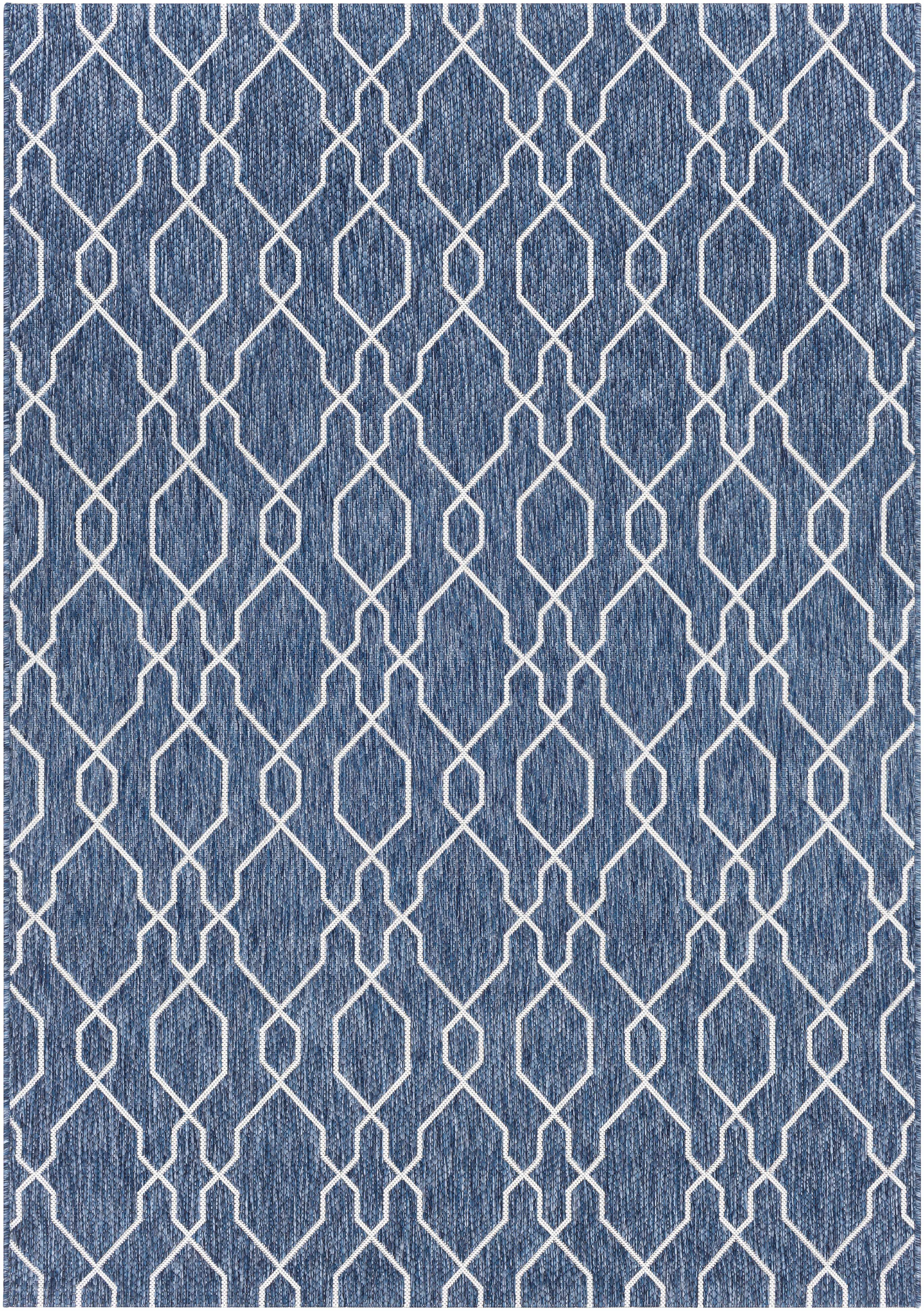 Collection: Aldford Colors: Cream, Denim, DarkBlue Construction: Machine Woven Material: 100% Polypropylene Pile: No Pile Styles: Traditional Outdoor Safe: Yes Made In: Turkey Thickness: 0.16" Price...