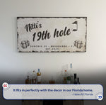 Make every round memorable! ⛳ Our '19th Hole Golf Personalized Sign' adds a dash of personal pride to your favorite golfing spot, highlighting your family's name and cherished location. 📍