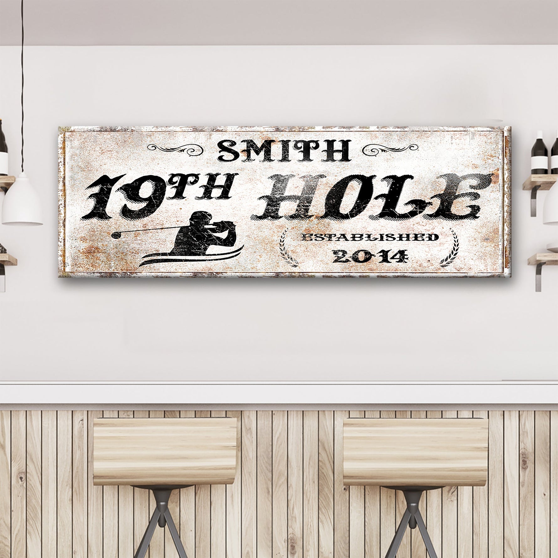 The long search is over for the perfect branding for your golf business with this 19th Hole sign! With this 19th Hole canvas print, you can add personality to your establishment and encourage word-of-mouth advertising from your clients.