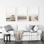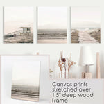 3 Piece Beige Coastal Wall Art. Waves, Beach Path, Lifeguard