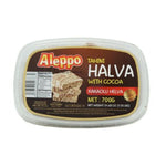 Aleppo Halva Cocoa (700g) is a larger-size variation of the traditional Turkish halva, made from high-quality sesame paste and infused with cocoa. This indulgent dessert has a smooth, crumbly texture and a rich cocoa flavor, offering a perfect balance of sweetness and chocolatey depth. The 700g size is ideal for families or gatherings, ensuring there’s enough to enjoy on multiple occasions.
