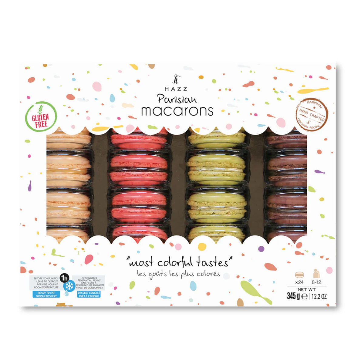 Macaron, Party 1 (Chocolate-Raspberry-Pistachio-Banana), 24pcs, 12.2oz (345g) x 4box - #300105