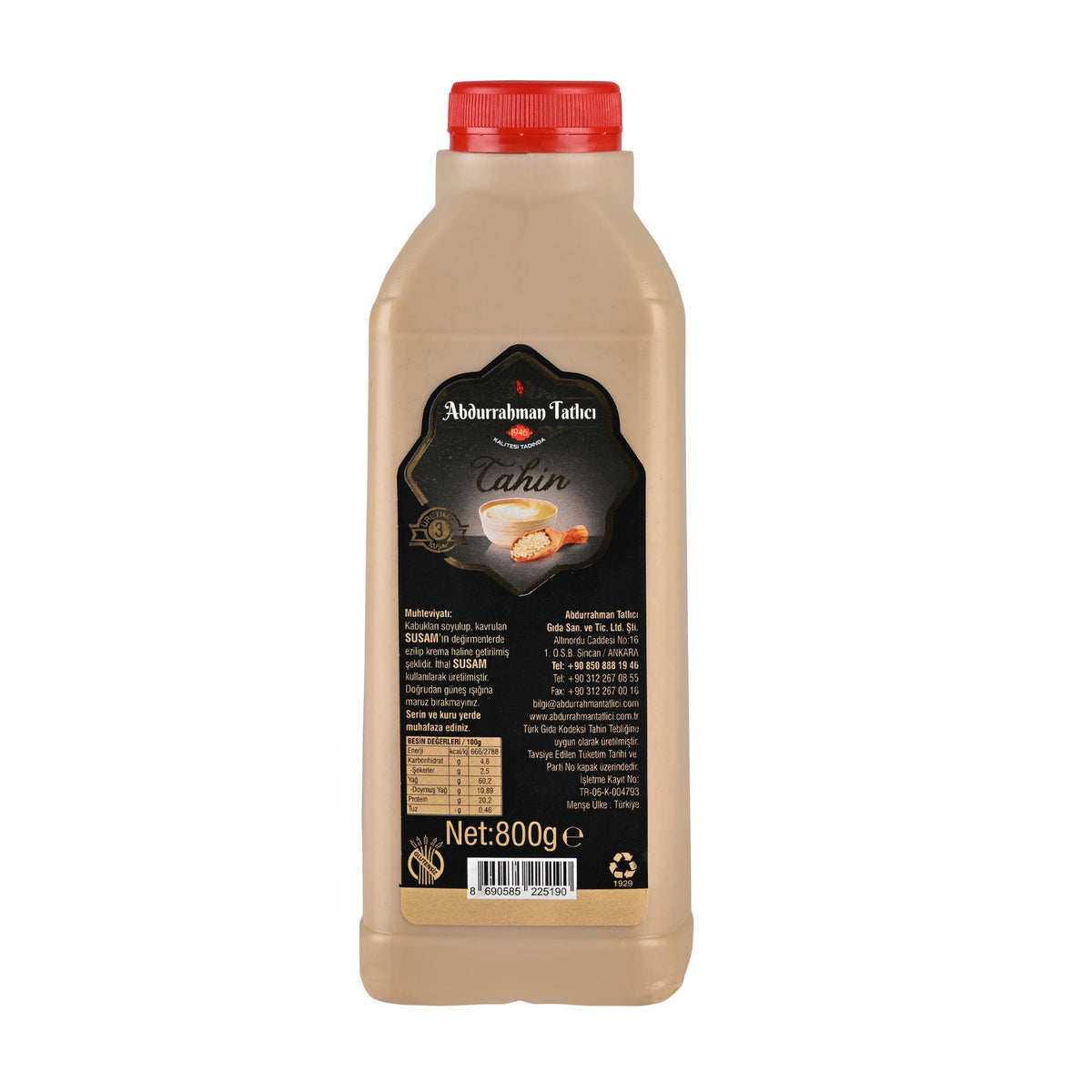 A. Tatlici Tahini (800g) is a premium-quality paste made from finely ground sesame seeds. Known for its creamy texture and rich, nutty flavor, tahini is a versatile ingredient that can be used in both savory and sweet dishes. The 800g PET container is great for regular use, whether you're preparing hummus, salad dressings, desserts, or simply enjoying it as a spread.