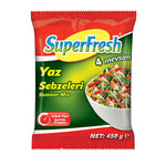 Superfresh Summermix Veg 450g offers a vibrant mix of carefully selected vegetables, frozen to preserve their natural flavors and textures. This colorful blend of vegetables is perfect for a variety of dishes, from stir-fries and soups to stews and salads. Convenient and quick to prepare, Superfresh Summermix Veg is an easy way to add fresh, nutritious vegetables to your meals.