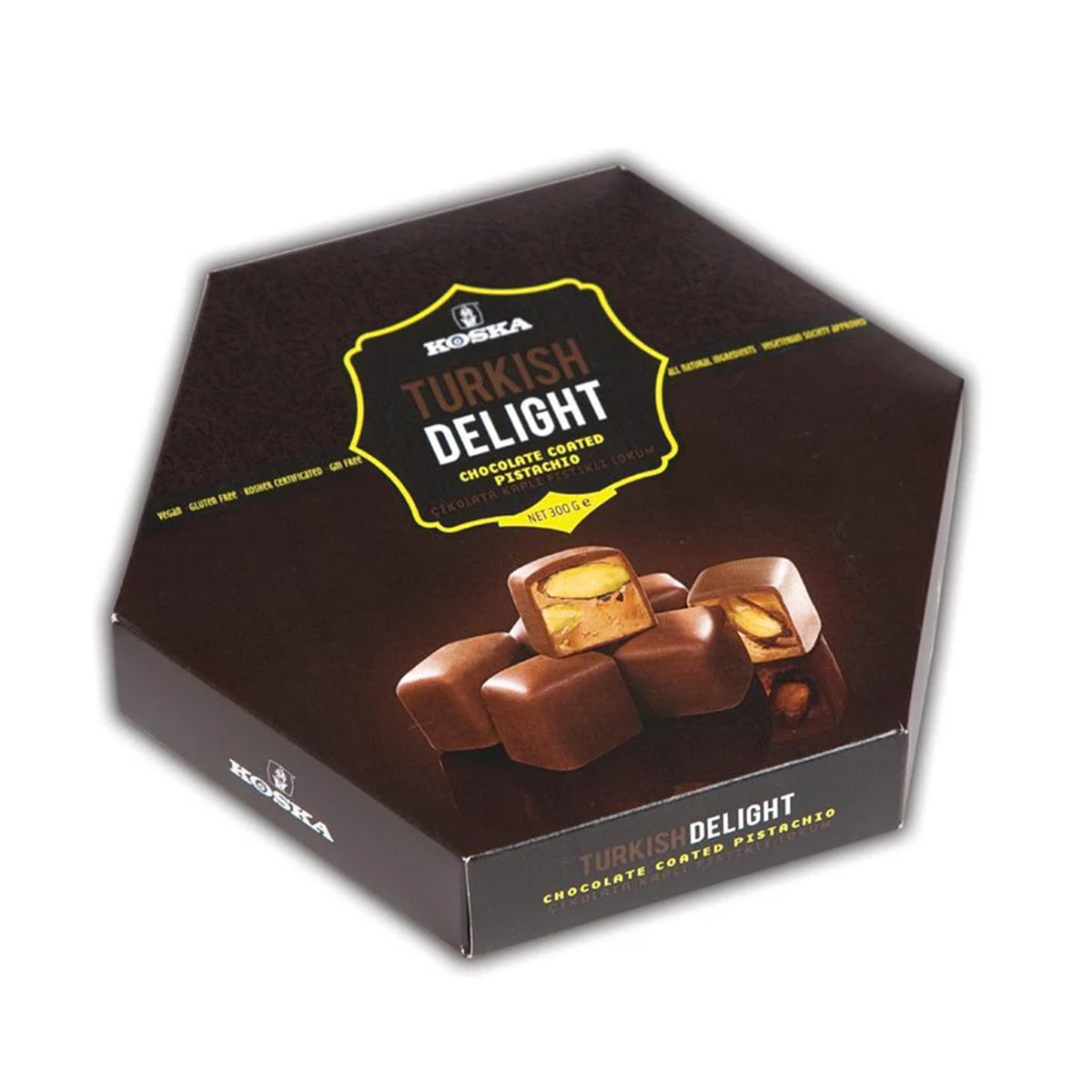 Koska Chocolate & Pistachio Turkish Delight (140g) is a decadent variation of the traditional Turkish delight. It combines the delicate, chewy texture of Turkish delight with the richness of chocolate and the crunch of roasted pistachios. This indulgent treat offers the perfect balance of sweet and nutty flavors, making it a unique and satisfying option for anyone who enjoys Turkish delight and pistachios. Koska’s Turkish delight is crafted with high-quality ingredients, offering an authentic and delicious experience.
