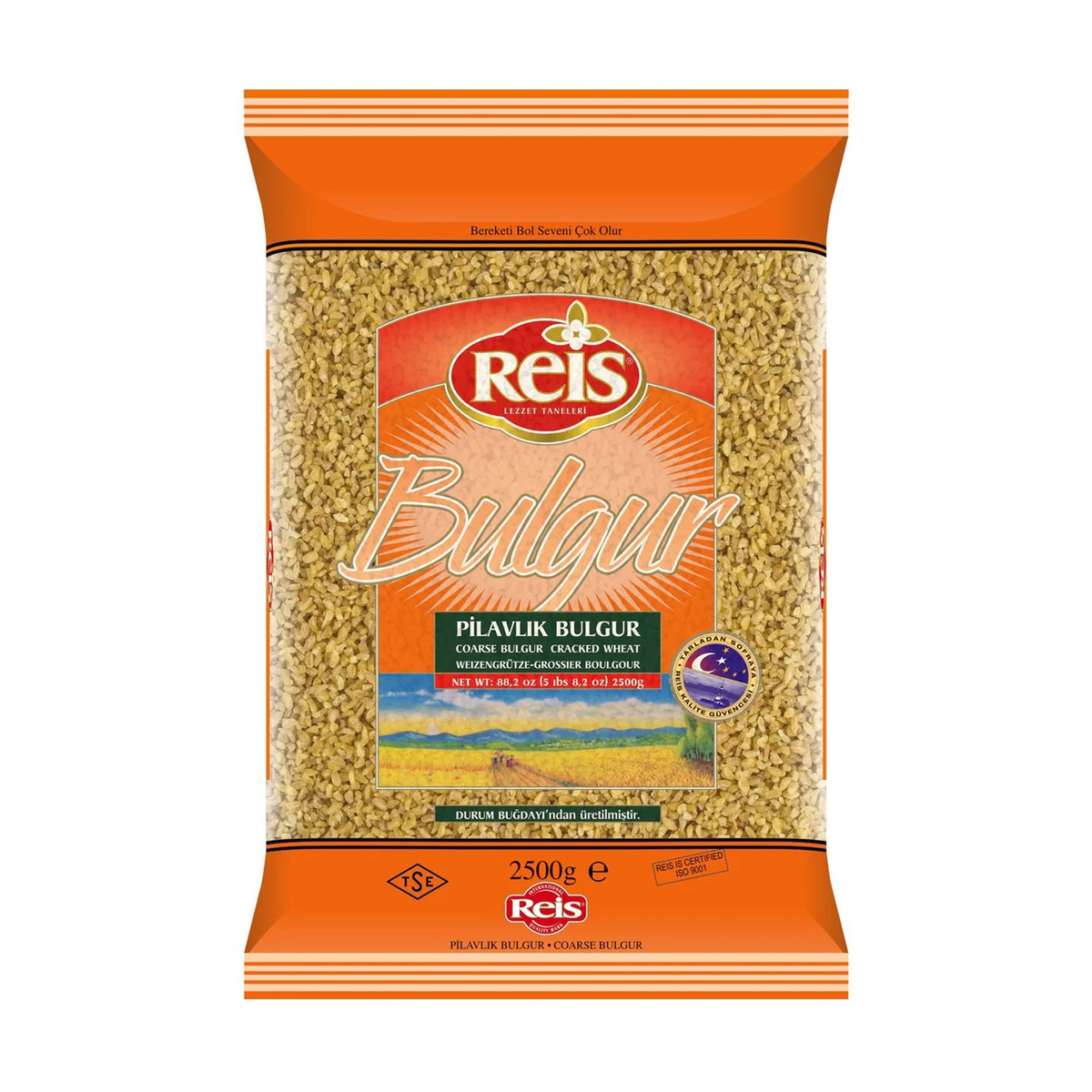 Reis Coarse Bulgur 2.5KG is a high-quality whole grain made from cracked wheat with a coarser texture. This 2.5kg pack is perfect for larger households or frequent cooking, ideal for preparing hearty dishes like pilafs, stews, soups, or as a filling for stuffed vegetables. Coarse bulgur offers a nutty flavor and satisfying chewiness, providing a nutritious and versatile base for many recipes. Rich in fiber and essential nutrients, Reis Coarse Bulgur is a great addition to your meals for anyone seeking a wholesome, filling, and healthy grain option.