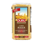 Duru Coarse Bulgur (1kg) is made from cracked wheat that is parboiled and then dried. It has a coarser texture compared to fine bulgur, which makes it ideal for pilafs, soups, and hearty salads. Coarse bulgur retains more of the wheat’s bran, making it a nutritious, high-fiber option. It is commonly used in Middle Eastern, Mediterranean, and Turkish dishes. The 1kg pack is ideal for smaller households or for occasional use in dishes that require a heartier texture.
