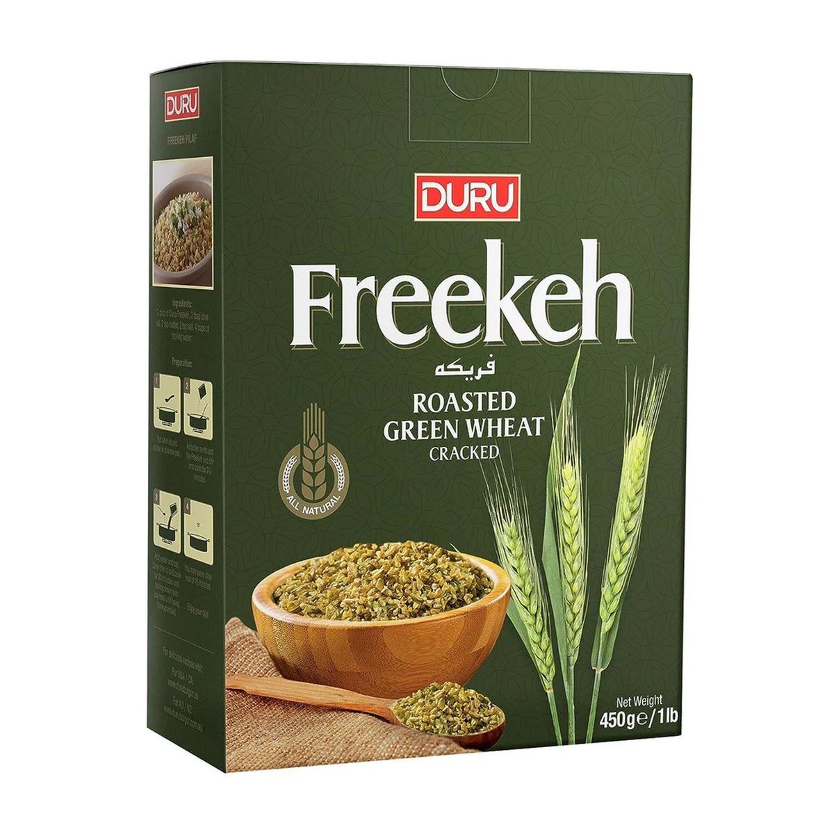 Duru Green Freekeh (450g) is a premium whole grain made from young, green wheat that is lightly roasted and cracked. This ancient grain boasts a slightly smoky flavor and a firm, chewy texture. Green freekeh is highly nutritious, packed with fiber, protein, and essential nutrients, making it an excellent choice for health-conscious meals. Its robust texture and earthy taste make it ideal for salads, soups, and as a wholesome alternative to rice or couscous in various dishes. The 450g package is perfect for those looking to incorporate a nutritious and flavorful grain into their diet without committing to a large quantity. Explore the rich flavors and nutritional benefits of Duru Green Freekeh to elevate your cooking and support a healthy eating plan.