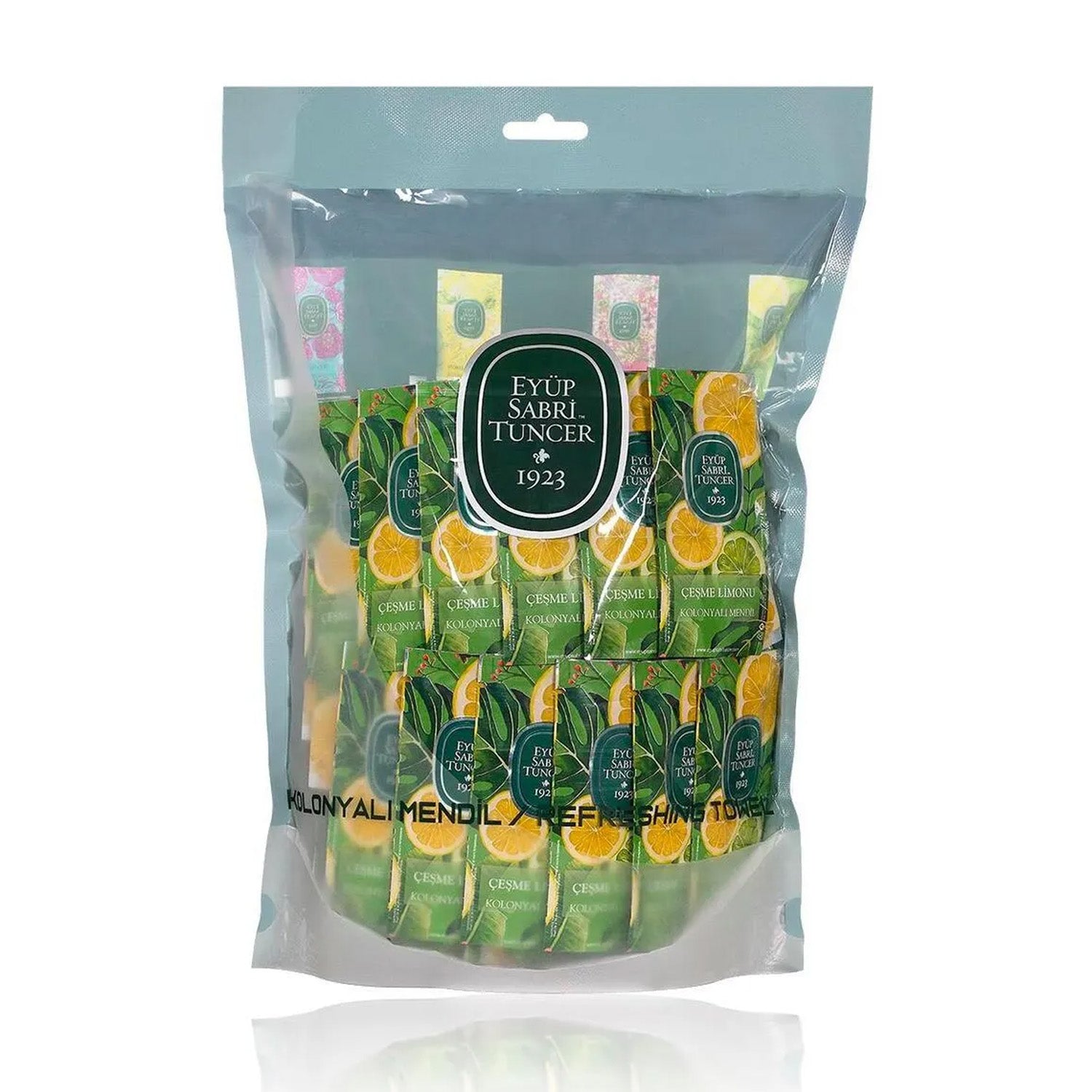 It fascinates and energizes with its unique and universal scent inspired by carefully selected Çe?me lemons. The scent, which opens with Çe?me lemon and lemon tree leaves, has lemon blossom and white flower scents in the middle note, making you feel like your body is surrounded by flowers. Oak moss and musks in the base note leave a therapeutic effect. Freshness and hygiene are always with you with the Eyup Sabri Tuncer special cologne wipes series, which are carefully packaged in stylish packages with an open wipe size of 13*18 cm in a 5*10 cm closed foil...