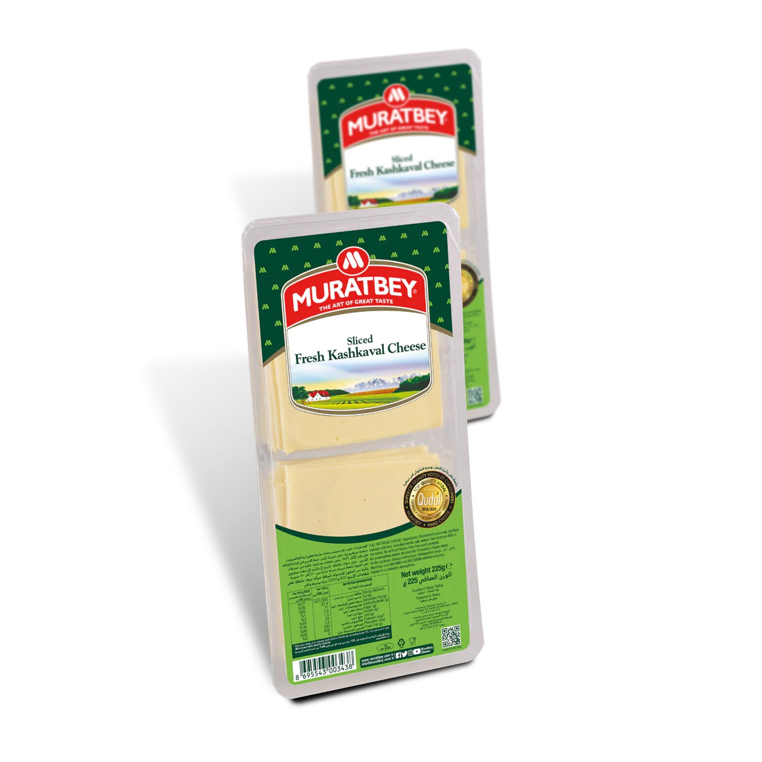 Muratbey Sliced Fresh Kashkaval cheese in convenient slices for recipes offers a natural and tasty solution for bone and dental health with its calcium content.