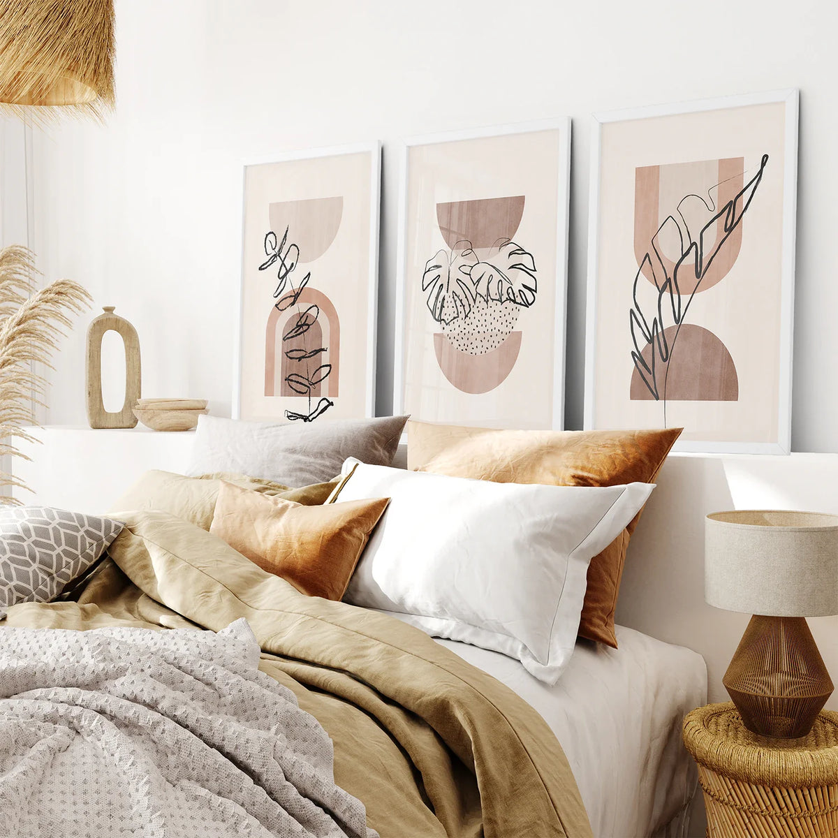 Transform your space with our calming Watercolor Boho Prints. This set of 3 prints features abstract plant art in terracotta hues, perfect for adding a touch of nature to your home. Our art is printed on high-quality paper and is available in various sizes to fit your wall space. Whether above your bed or in your living room, these framed boho prints will bring a mid-century vibe to any room. Order now and enjoy a touch of abstract botanical beauty in your home.
