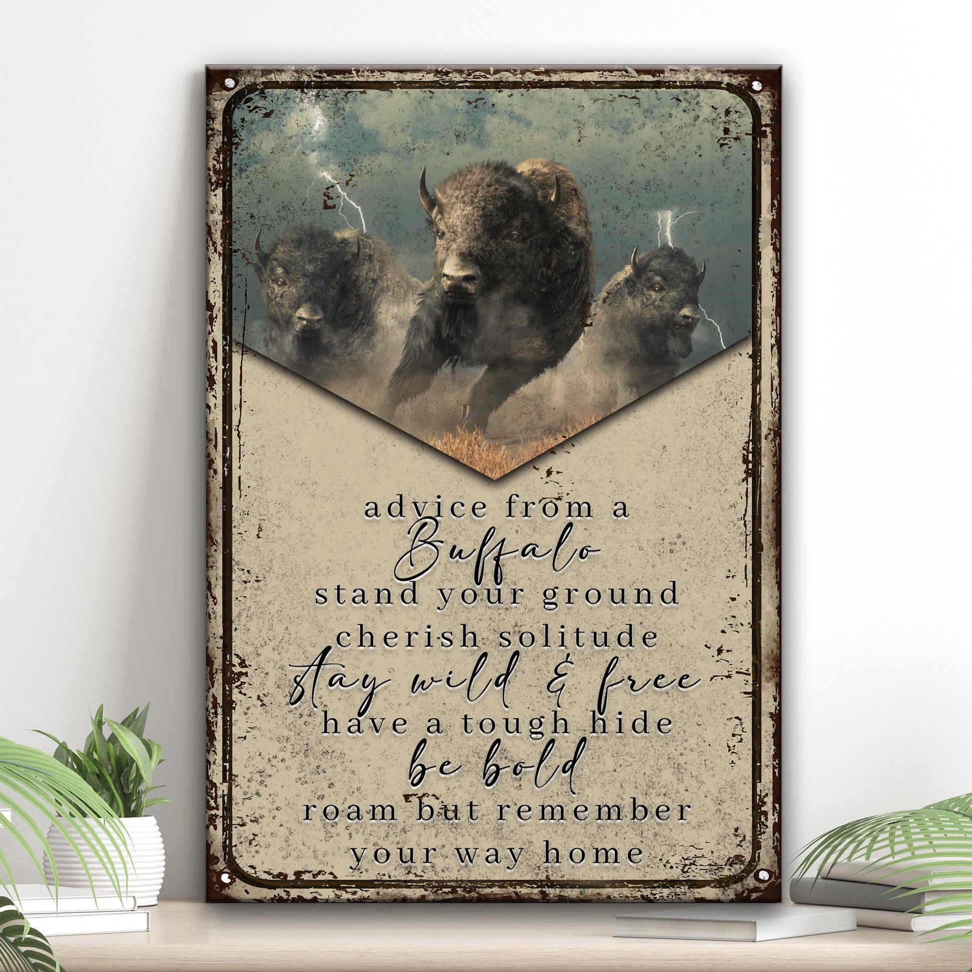 Transform your living space with the timeless wisdom of our Advice From A Buffalo Sign. This beautifully crafted piece of art adds a touch of rustic charm to your home decor and serves as a daily reminder of the powerful lessons we can learn from these majestic creatures.