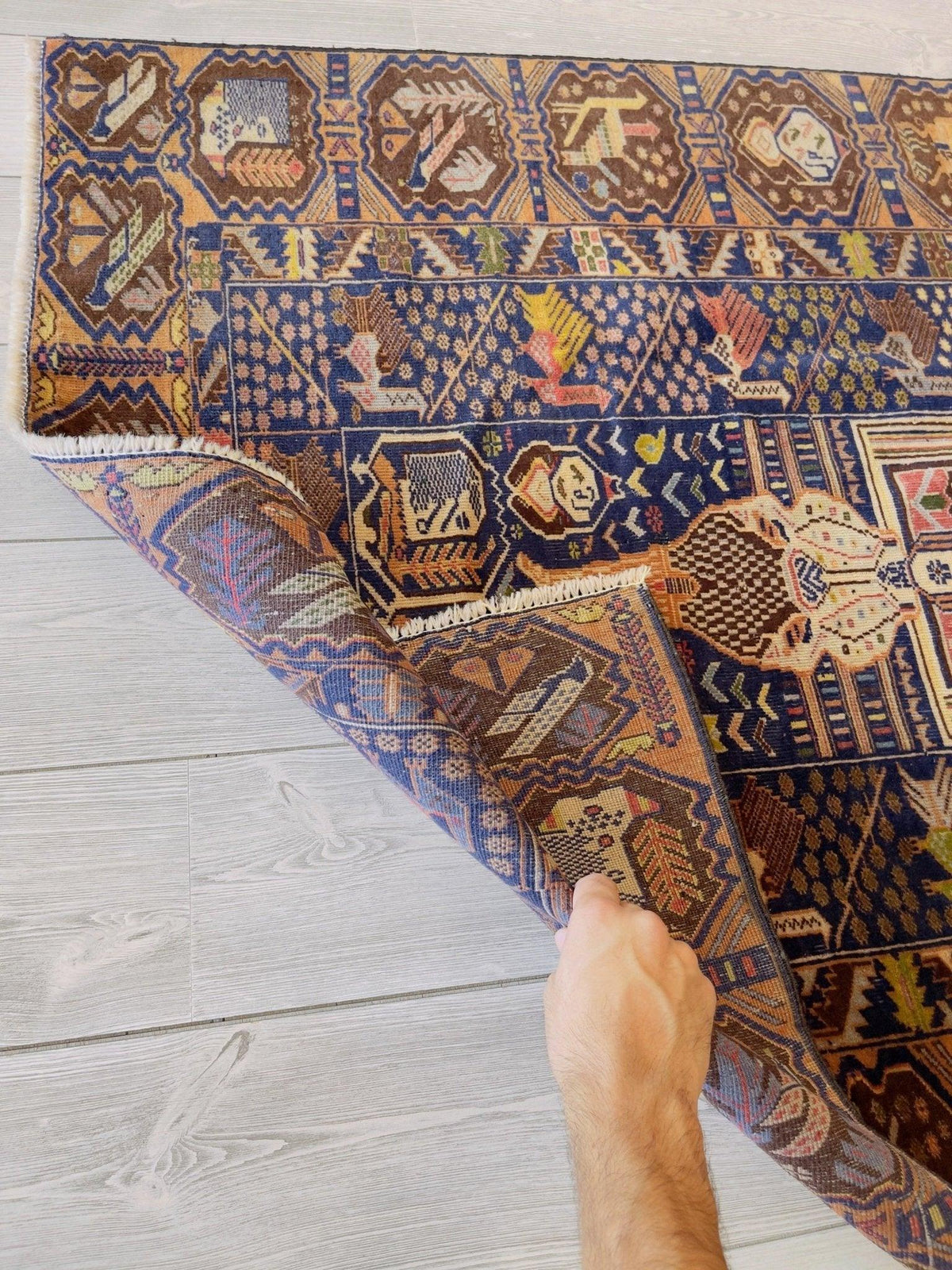 Afghani Vintage Pictorial Rug I Tribal Baluchi 4X7 Ft
