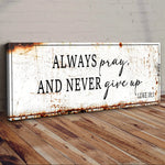 Always Pray And Never Give Up - Luke 18:1 Faith Sign