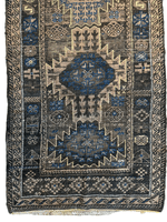 Antique small runner made with wool pile on wool foundation woven by tribal Baluchi people.