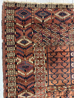 Antique 1880s Turkoman Tekke Ensi Tent Door Covering Rug 4’ x4’8”