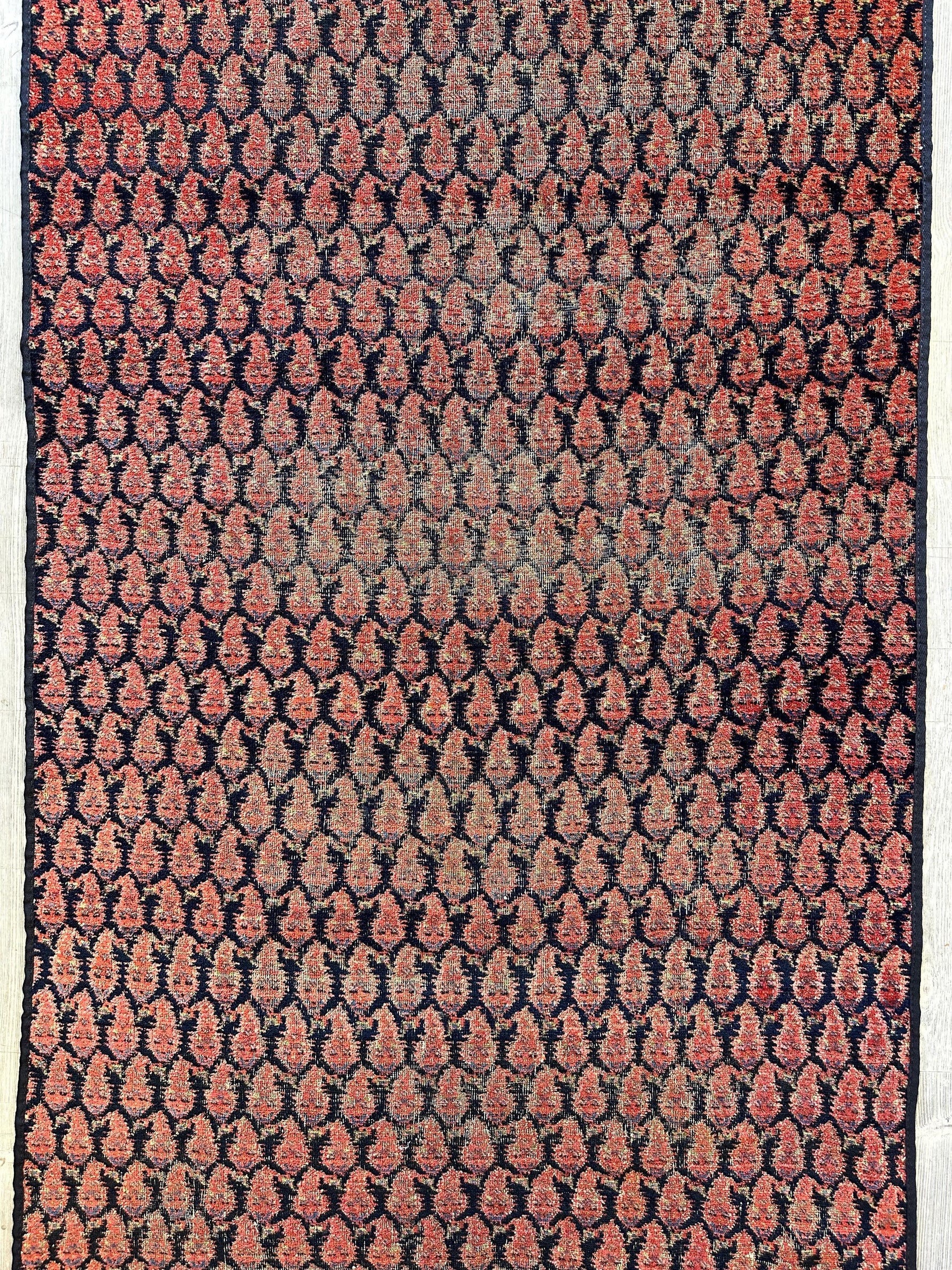 Antique All Over Paisley Kurdish Afshar Fragment Runner 3’3” x 7’7”