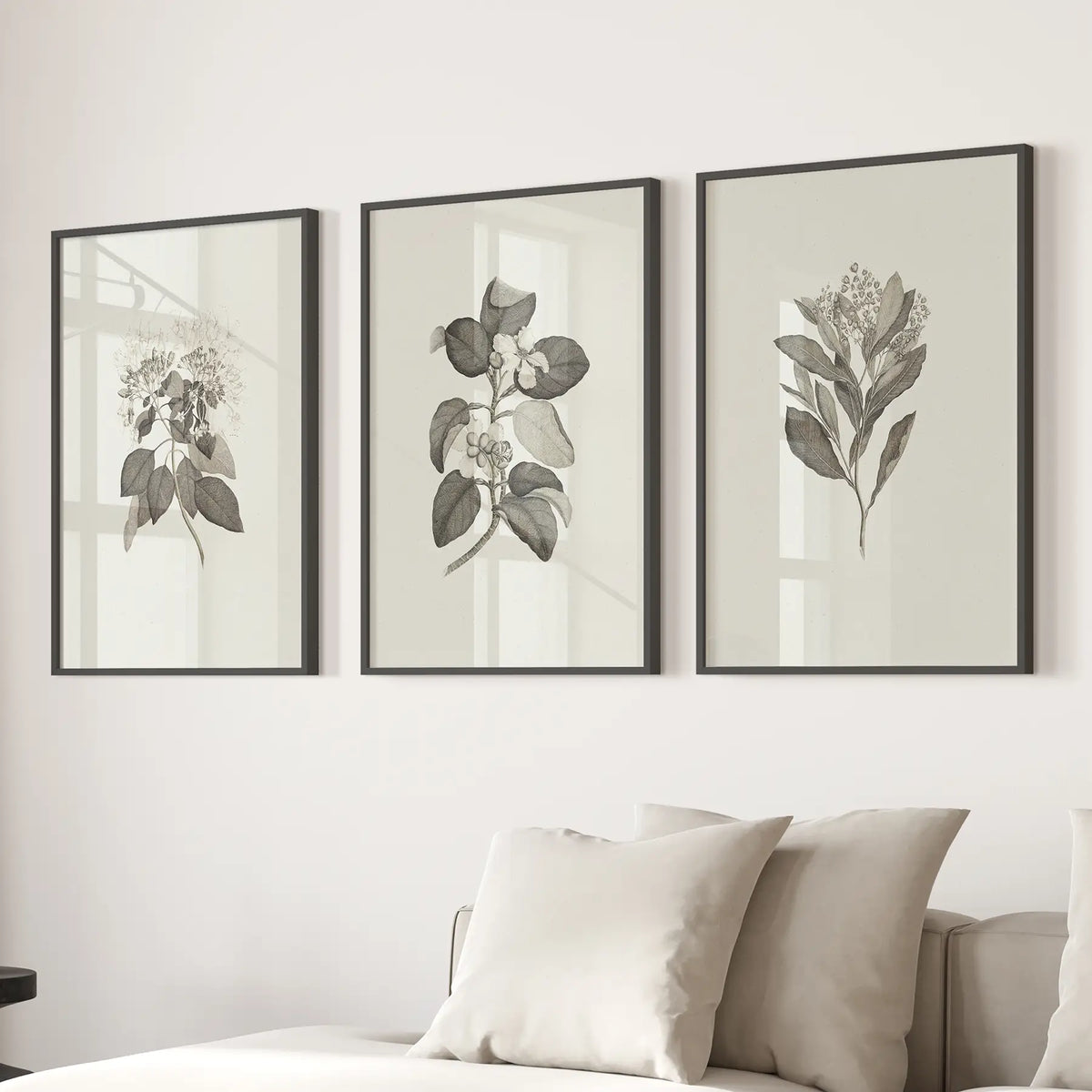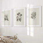 Elegant black and white botanical wall art set of 3. Featuring detailed vintage-style floral illustrations, these prints bring timeless sophistication to any space. Perfect for minimalist, farmhouse, or modern interiors, they create a calming, natural atmosphere in your bedroom or living room.