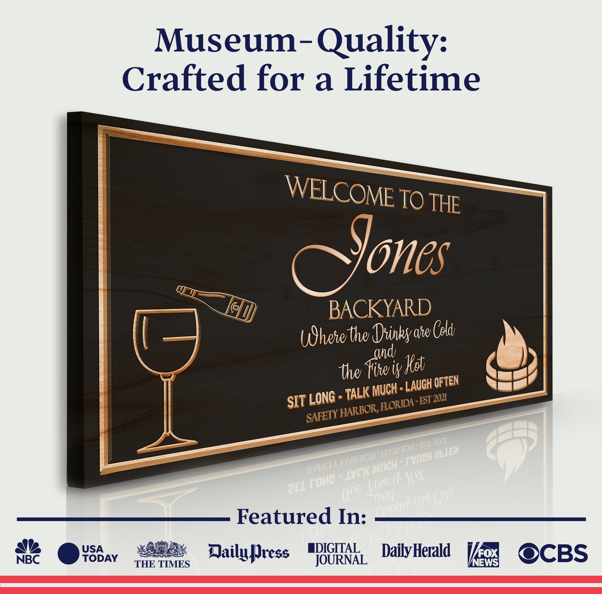 This beautiful backyard sign is made of high-quality canvas and features a stunning rustic design. It's the perfect way to add a touch of charm and character to your favorite outdoor space.