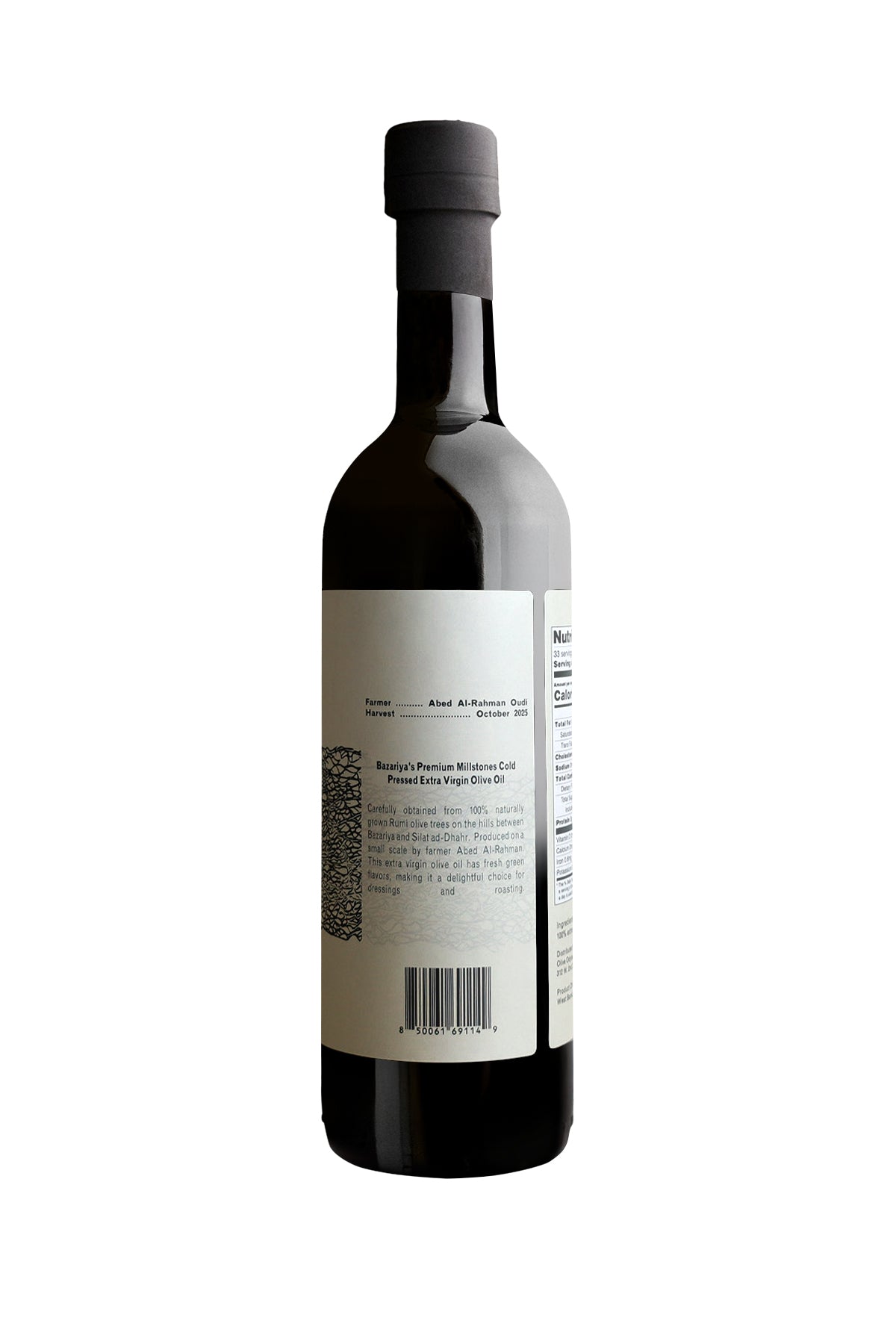 Bazariya’s millstone-pressed olive oil embodies the craft that started our journey. Each harvest with Abed Al-Rahman Oudi refines the legacy of his family press. Fruity, tangy, and smooth — a celebration of heritage, authenticity, and the enduring connection between land, farmer, and flavor.