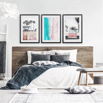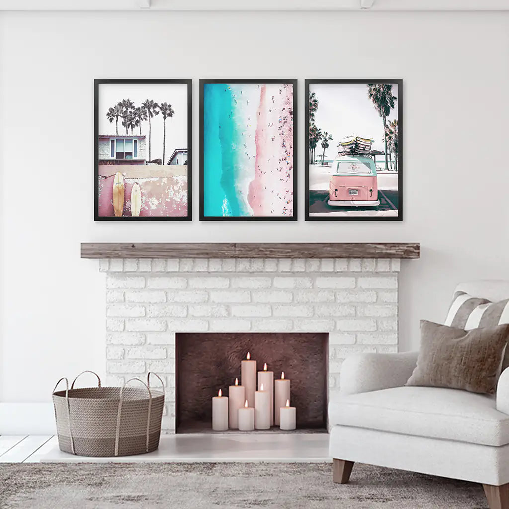 Boho Coastal Prints. Pink Combi Van, Aerial Beach, Surfing