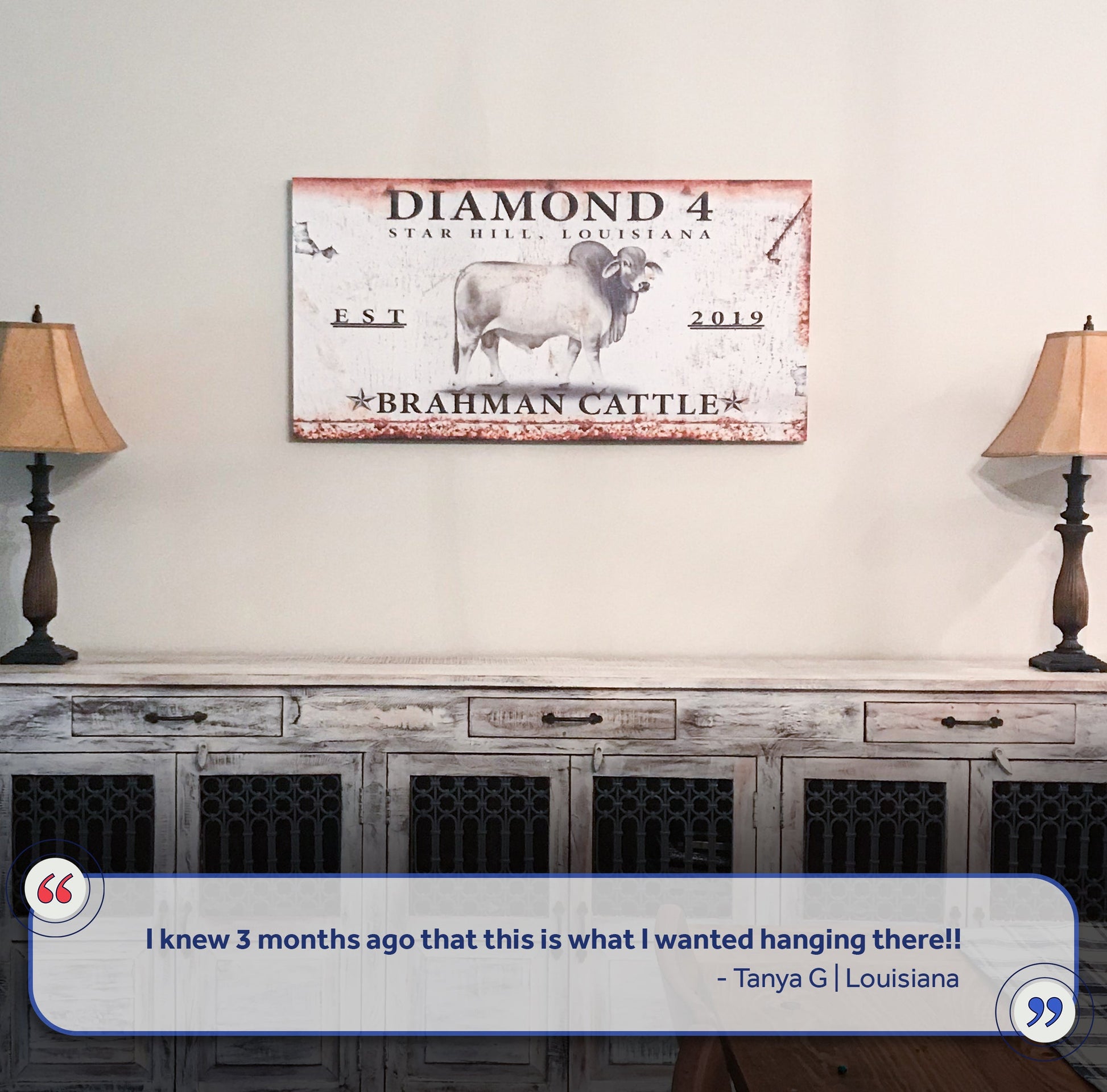 Looking for a unique way to spruce up your porch or patio? Then take a look at our Brahman cattle sign! The traditional vibe of this wall art will add a touch of class to any space, and it's the perfect way to show your love of cattle.