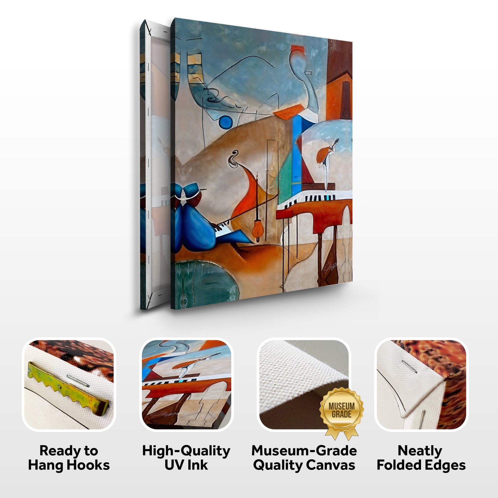 Bring a touch of elegance to your home with this abstract piece from his beautiful art collection. Featuring a harmonious blend of colors and shapes, it captures the essence of music and movement. Perfect for creating a sophisticated and dynamic atmosphere, it transforms any room into an artistic haven.