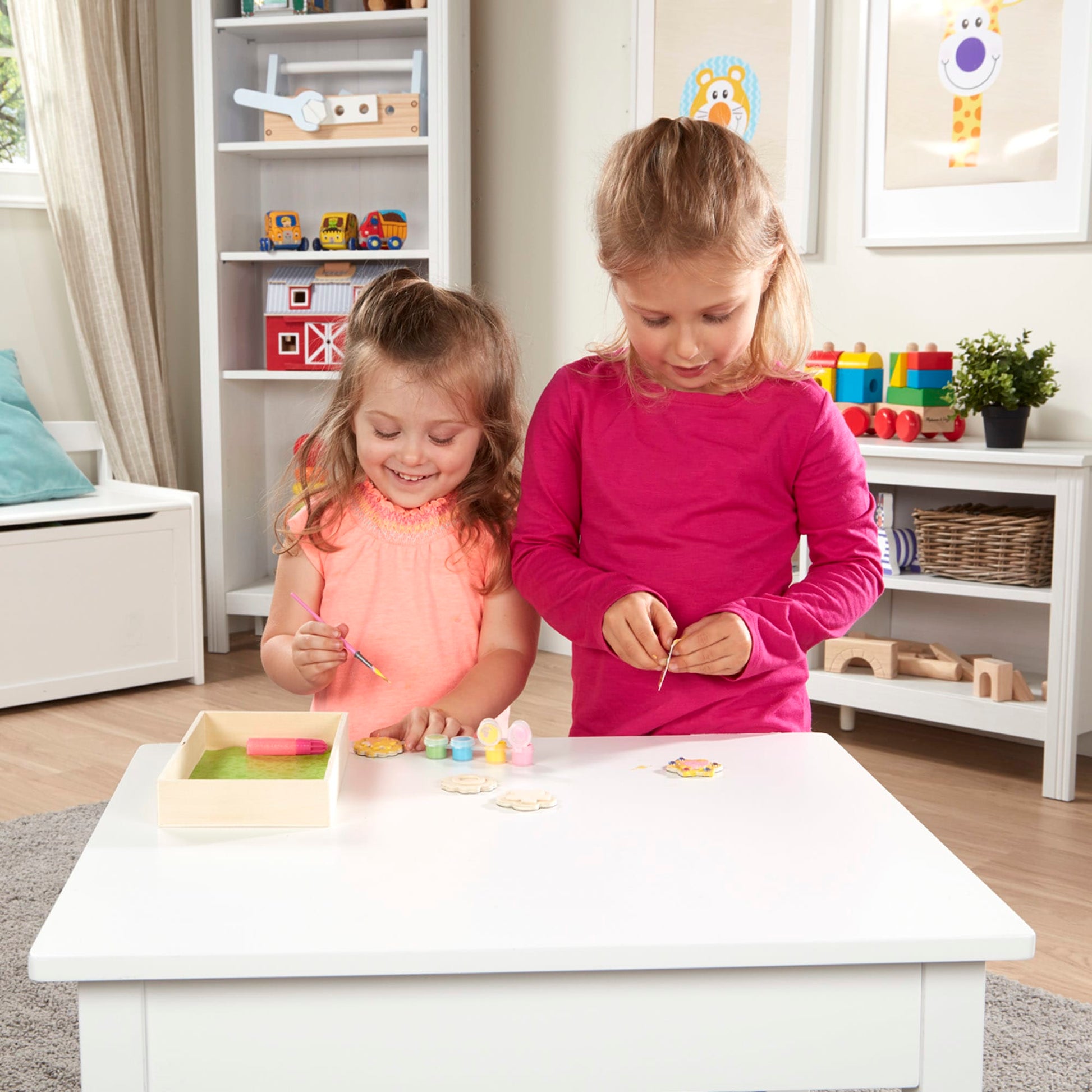 Add your unique personal touches to four wooden flower magnets to make original crafts inspired by you and your imagination! This all-inclusive kit includes four three-dimensional flower magnets in different designs, four pots of paint, a paintbrush, 12 gem stickers, and glitter glue to add extra sparkle. Fun for kids four and older to do on their own or with friends, these crafts make special keepsakes or gifts.