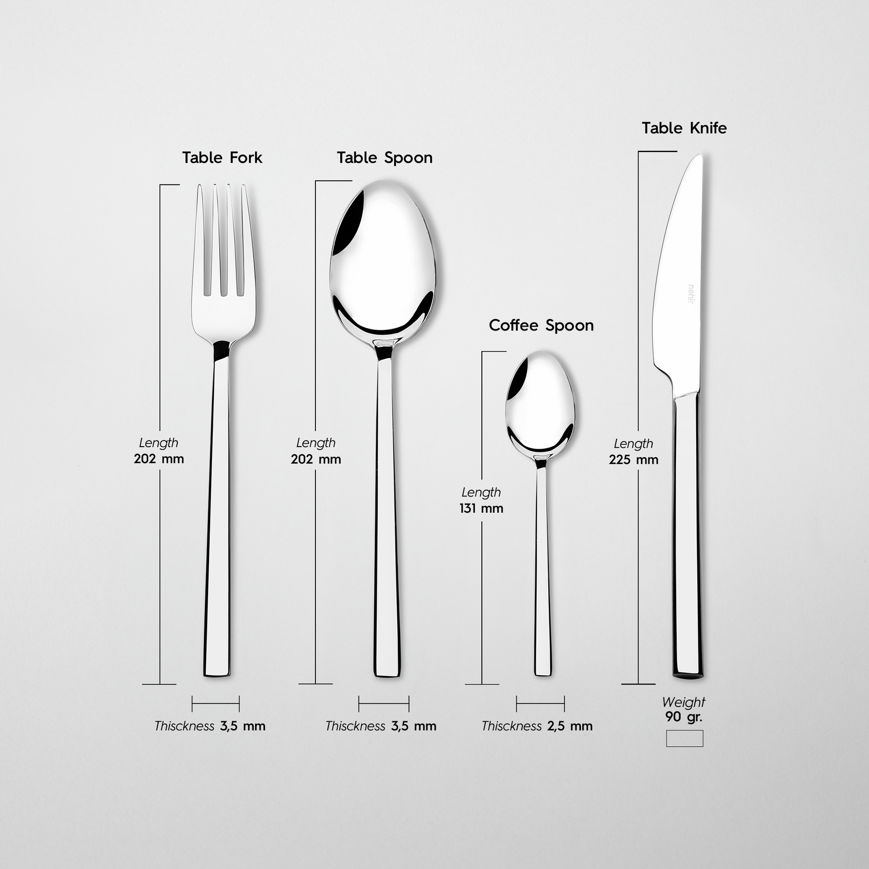 Made in Turkey: The Nehir Dalyan Mirror Finish Cutlery Set is meticulously crafted by expert artisans at Nehir in Turkey. High craftsmanship and quality are incorporated into every piece, adding an elegant touch to your dining table.