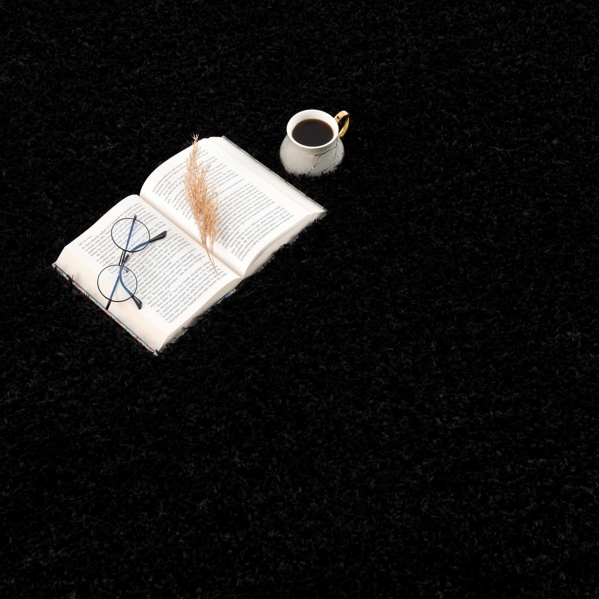 Faina Solid Black Shag Rug Washable