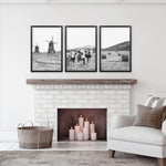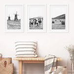This wonderful set of 3 black and white farm house style prints is suitable for both your country house and your city apartment. After all, many of us have great memories from our childhood associated with the farm. Windmill, cows and haystacks is something that brings your memories back.