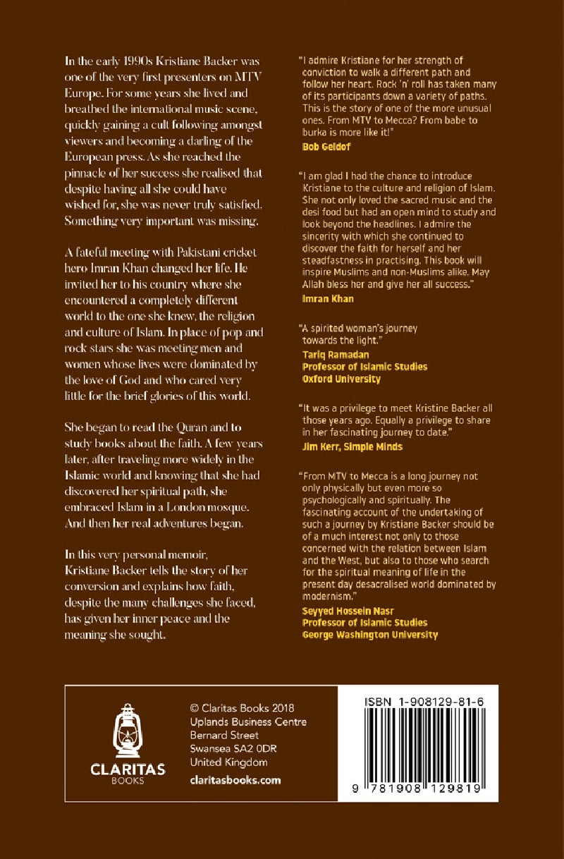 Kristiane Backer was one of the very first presenters on MTV Europe. She gained a cult following and became a darling of the European press, but something was missing from her life. A fateful encounter introduced her to a completely different world to the one she knew, the religion and culture of Islam. After reading the Quran and traveling widely in the Islamic world she knew that she had discovered her spiritual path and she embraced Islam. This private memoir tells the story of her conversion and explains how faith at last gave her inner peace and the meaning she had sought. With abundant color photos. "From MTV to Mecca? From babe to burka is more like it!"--Bob Geldoff