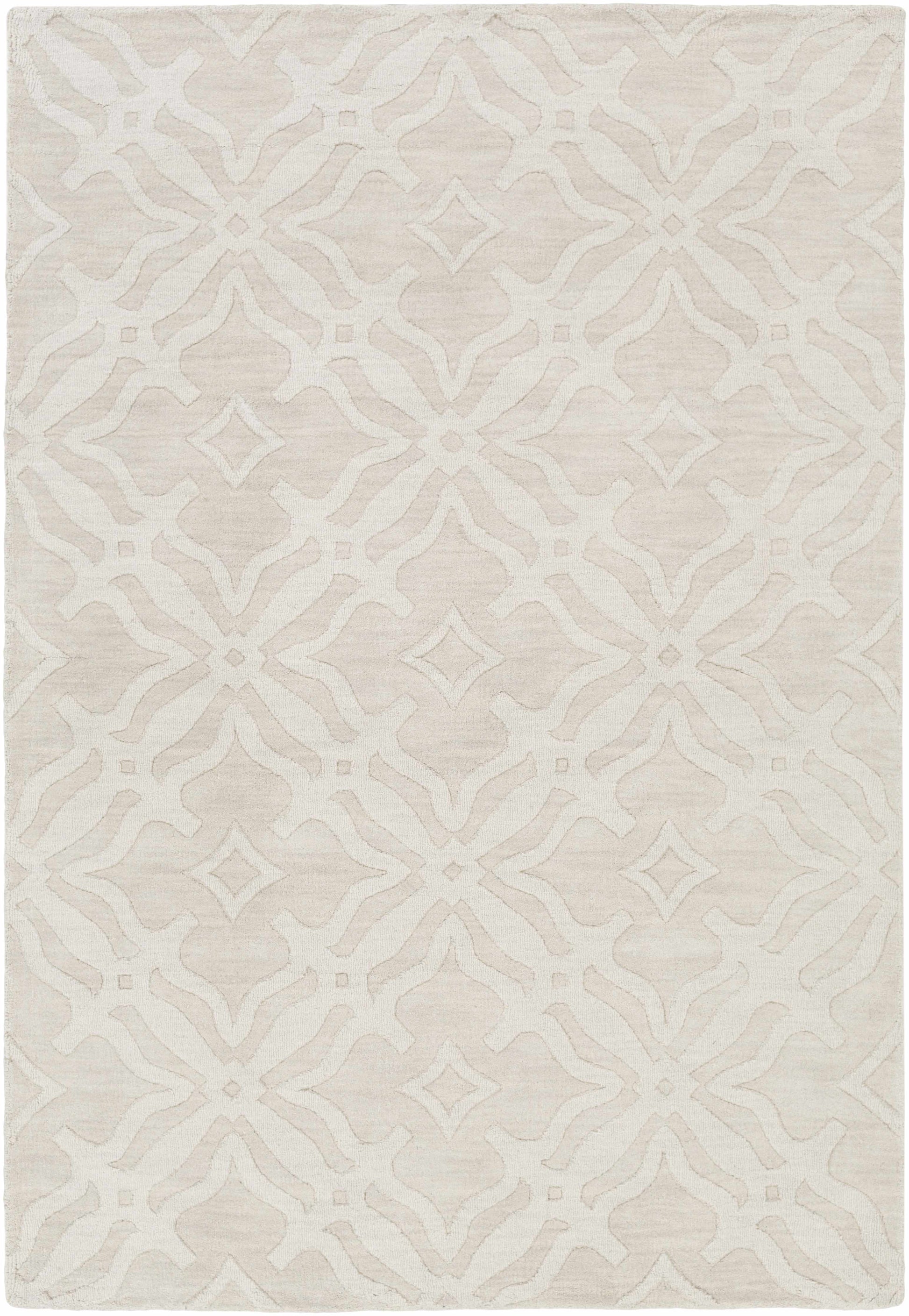 Fyffe Embossed Beige Wool Area Rug