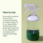 This eco-friendly cleaner reduces single-use plastics with biodegradable concentrates and reusable glass spray bottles. Simply pour a 30 mL concentrate into a 16 oz bottle, add water, shake, and clean!