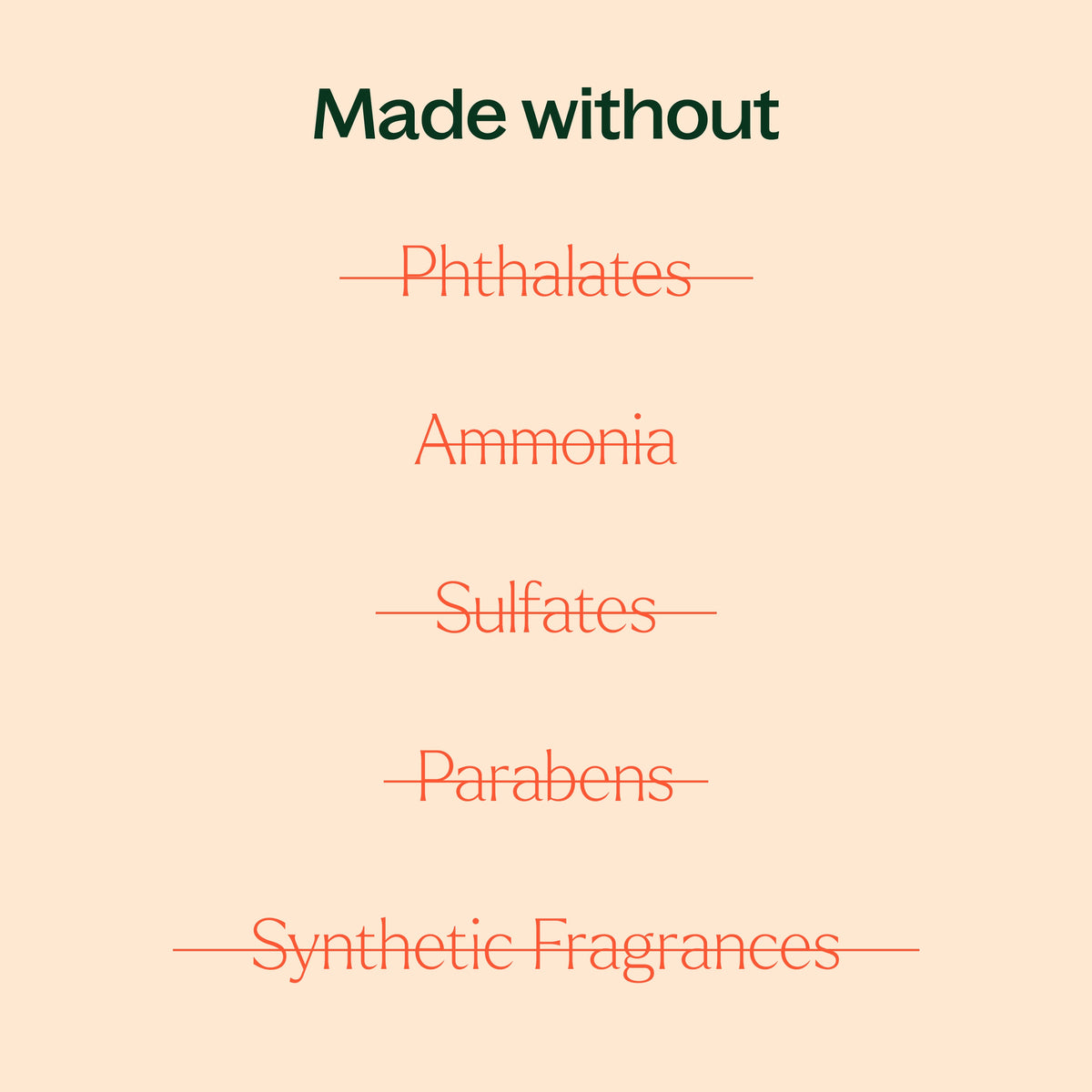 This product is made responsibly without animal by-products, bleach, caustics, chlorine, DEA, dyes, formaldehyde, MEA, methylisothiazolinone, parabens, PEGs, phosphates, phthalates, sulfates, TEA, and triclosan.