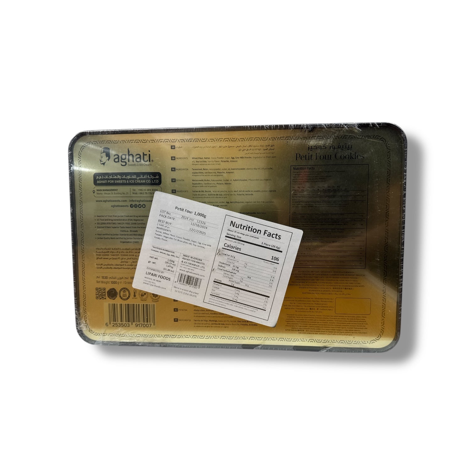 Indulge in luxury with Aghati Petit Four Cookies, a premium selection of handcrafted bite-sized delights. Made with care using traditional recipes and the finest ingredients, this 1kg tray includes a colorful variety of rich, buttery cookies topped with pistachios, chocolate, coconut, and more.