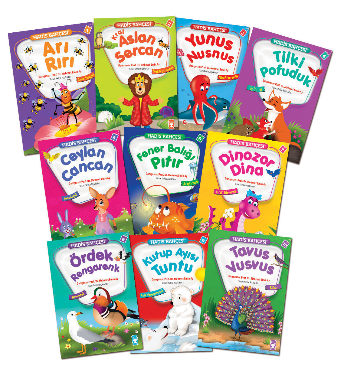 Masallardaki renkli dünya, çocukları oldukça etkiler. Bu seride her biri özenle kaleme alınmış masalların, çocukların birçok değeri tanımasına, buna bağlı olarak tavır ve davranışlarında olumlu değişimler yaşamasına vesile olacağı kanaatindeyim. Prof. Dr. Mehmet Emin Ay Hadis Bahçesi dizisi, her kitabın baş kısmında belirtilen hadiste konu olan erdeme atıf yapan masallar içeriyor. Böylece çocuklara masallarla 10 hadis ve 10 evrensel değeri eğlenceli masallarla öğretmeyi hedefliyor. Engelli yavru kutup ayısı karşısına çıkan engellerle başa çıkabilecek mi? Aslan Sercan'ın yerine bir süreliğine geçen teyze oğlu Akça Aslan ayrımcılık yapmaktan vazgeçebilecek mi? Yunus Nusnus, yaralı ahtapota yardım edebilecek mi? Tilki Pofuduk kürkünü koruyabilecek mi? Ceylan Cancan, arkadaşı Ceren'e yardım edebilecek mi? Fener Balığı Pıtır, merak ettiklerine kavuşabilecek mi? Dinozor Dina, yemeği çok sevdiği orkideleri israf etmemeyi başarabilecek mi? Ördek Rengarenk kurumakta olan gölü kurtarabilecek mi? Arı Rırı bin yavrusunu büyütmeyi başarabilecek mi? Tavus Vusvus, sahip olduğu güzellikleri fark edebilecek mi? Birbirinden renkli, güzel, eğlenceli masallarla hadislerin dünyasına yolculuk bu dizide okurlarını bekliyor.