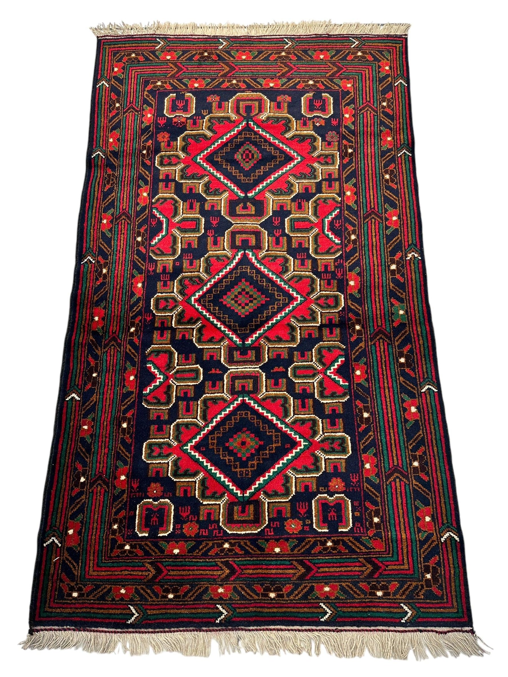 Hand-Knotted Afghani Baluch Wool Rug - 2'10" x 5'