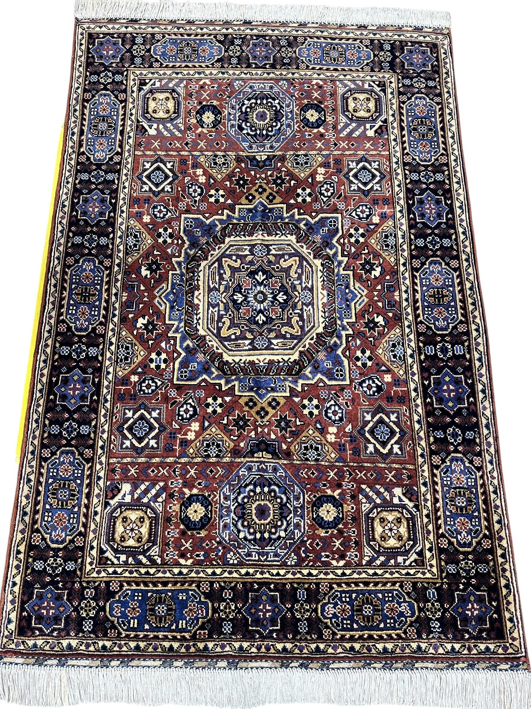 Hand-Knotted Afghani Blue & Brown Mamluk Wool Rug – 40” x 62”