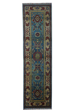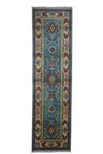 Hand-Knotted Afghani Kazak Wool Rug – 2’8″ x 9’9″