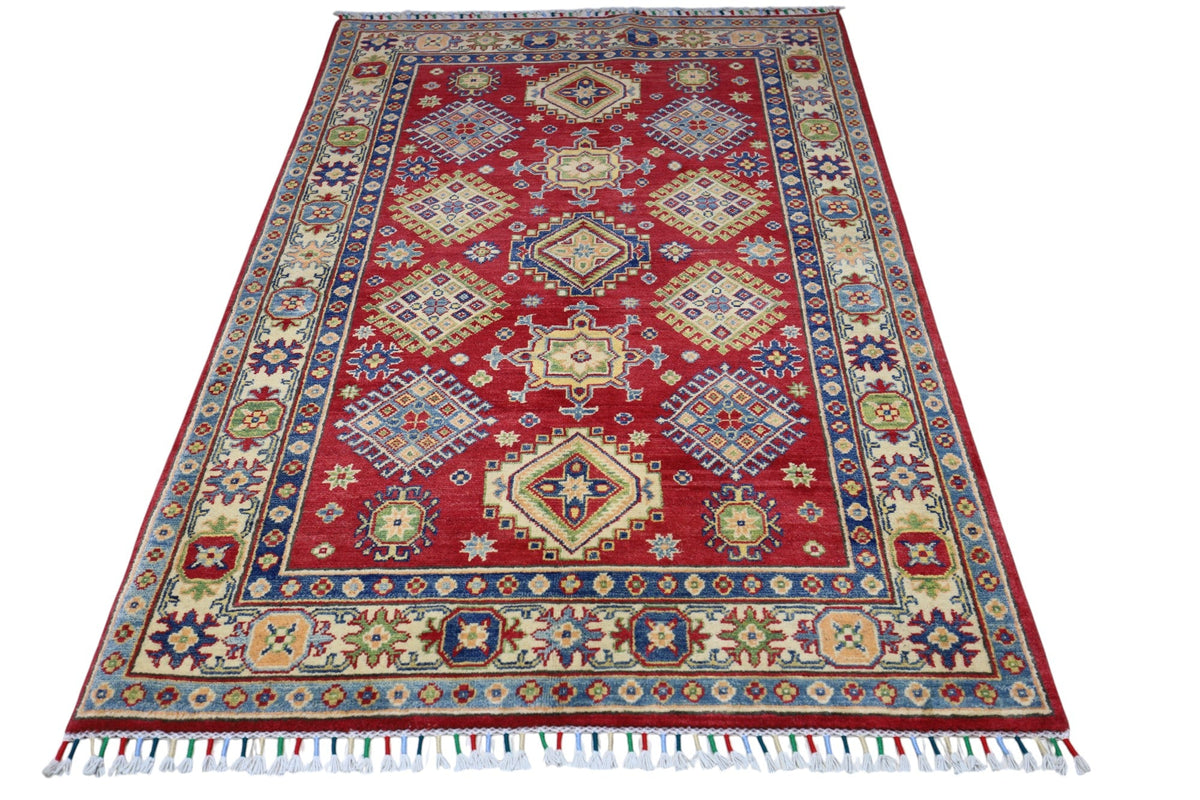 Hand-Knotted Afghani Kazak Wool Rug – 3’10″ x 6’0″