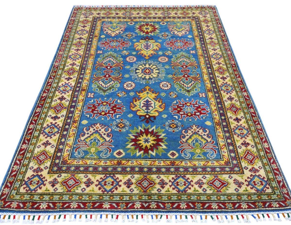 Hand-Knotted Afghani Kazak Wool Rug – 3’11″ x 6’0″