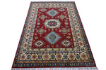 Hand-Knotted Afghani Kazak Wool Rug – 4’10″ x 6’6″