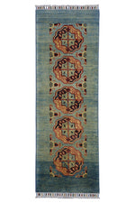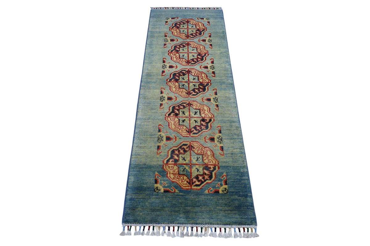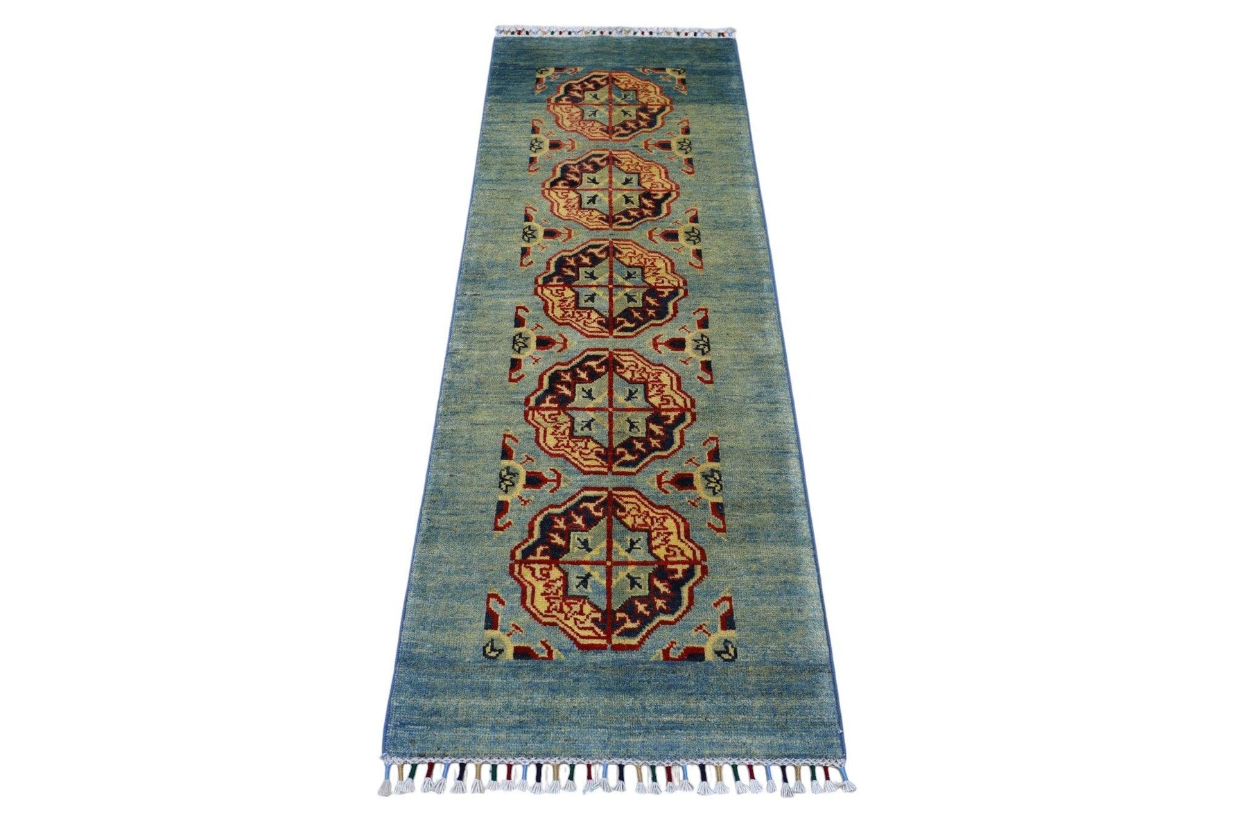 Hand-Knotted, Kazak, Green, Wool, Runner, 2' x 5'7", afghan, afghani, 2' x 5'7", KAZ248-257