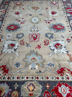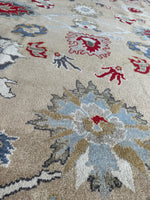 This stunning hand-knotted Oushak wool rug brings a touch of traditional elegance to any living room. The intricate design and full pile construction make this rug a luxurious addition to your home. Crafted in India, this 9x12 rug is expertly hand-made to ensure quality and durability.