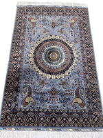 Add a touch of elegance to your space with this exquisite hand-knotted Parak rug, featuring a sophisticated silver-gray palette accented by delicate geometric patterns. The Parak design showcases clean lines and intricate detailing, offering a modern twist on traditional Afghan craftsmanship. Measuring 40” x 60” with a 0.5” thickness, this rug combines lasting durability with luxurious softness, making it a versatile addition to your living room, bedroom, or office. Carefully crafted by skilled artisans, this rug represents the finest traditions of Afghan rug-making.