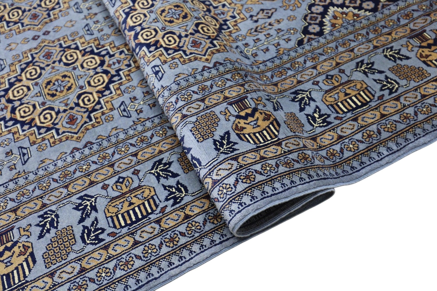 Hand-Knotted Zerkhaki Afghan Wool Area Rug – 6'11" x 10'3" | Elegant Grey-Toned Design